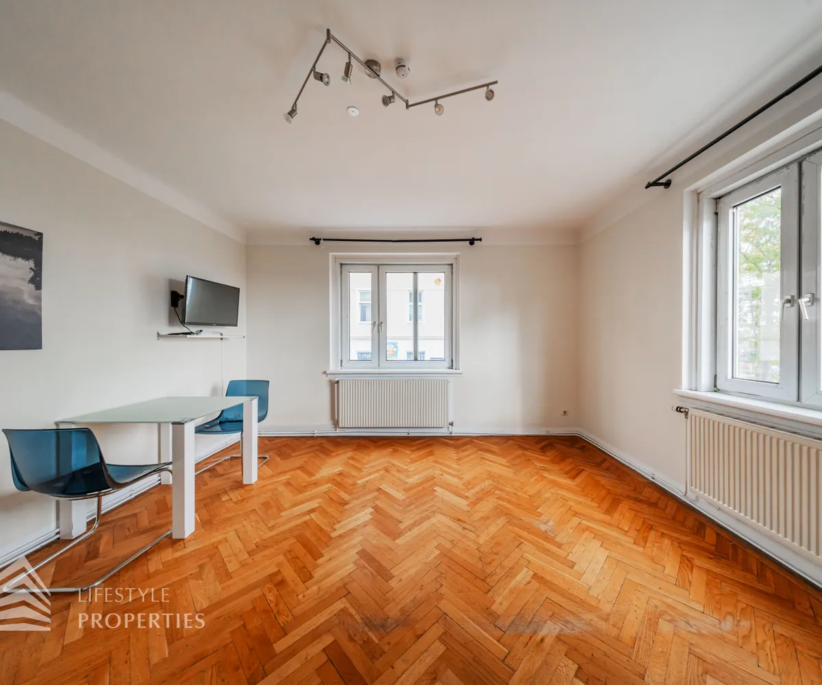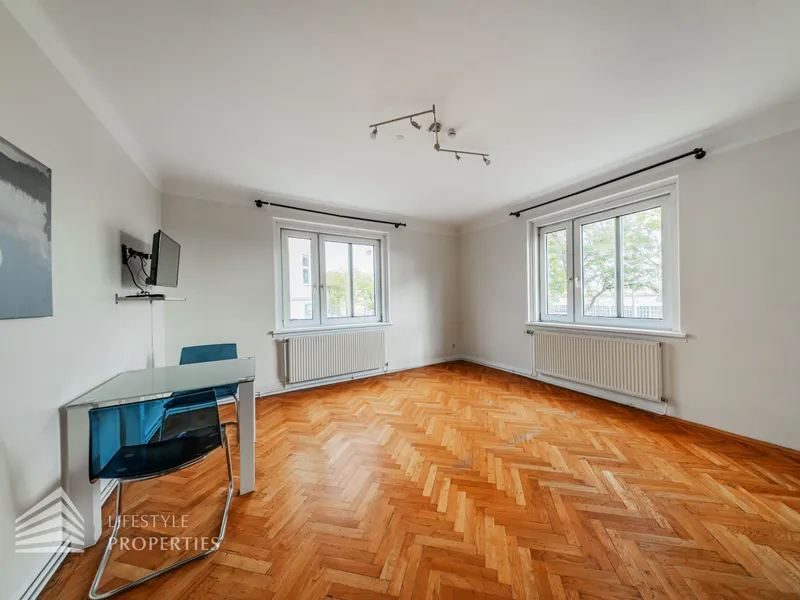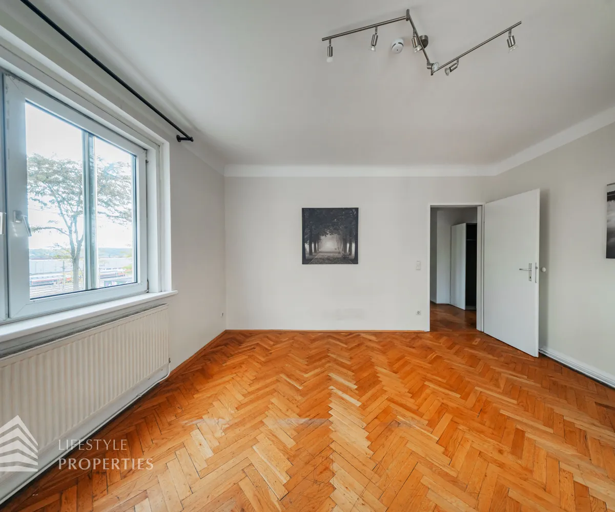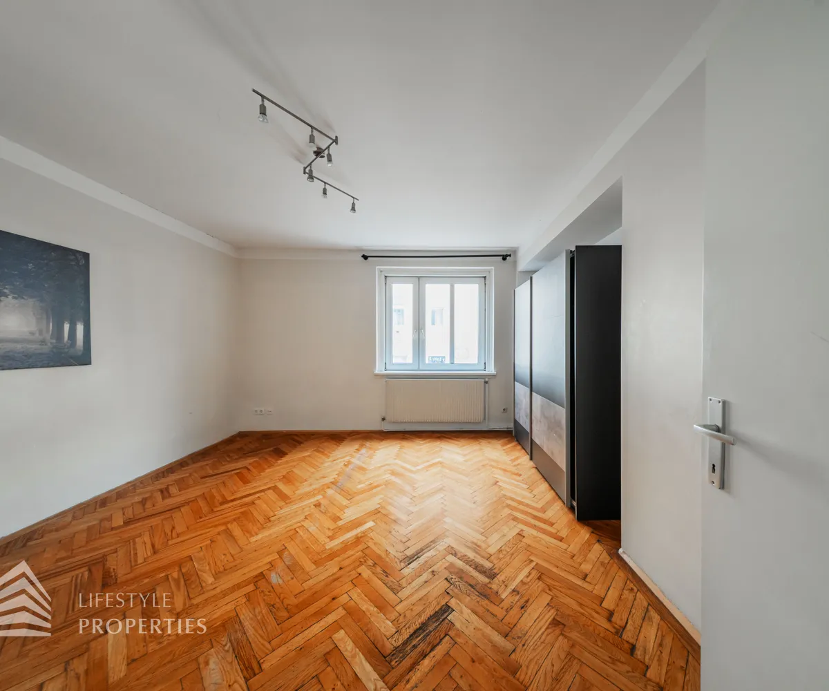 Sie verfügt über ca. 64 m² und befindet sich im 1. Stock eines im Jahr 1936 erbauten Altbaus. Die Wohnung gliedert sich in einen Vorraum, einen Wohnraum, ein Schlafzimmer, eine Küche, ein Badezimmer und ein separates WC. Die Wohnräume sind mit einem Parkettboden ausgestattet und die Nassräume sind verfliest. Beheizt wird mittels Gas-Etagenheizung.