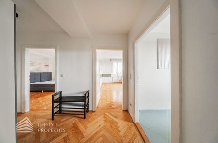 Sie verfügt über ca. 66 m² Wohnfläche und befindet sich im 3. Stock eines im Jahr 1936 erbauten Altbau. Die Wohnung gliedert sich in einen Vorraum, eine Wohnküche, zwei Zimmer, ein Badezimmer und ein separates WC. Die Wohnräume sind mit einem Parkettboden ausgestattet und die Nassräume sind verfliest. Beheizt wird mittels Gas-Etagenheizung.