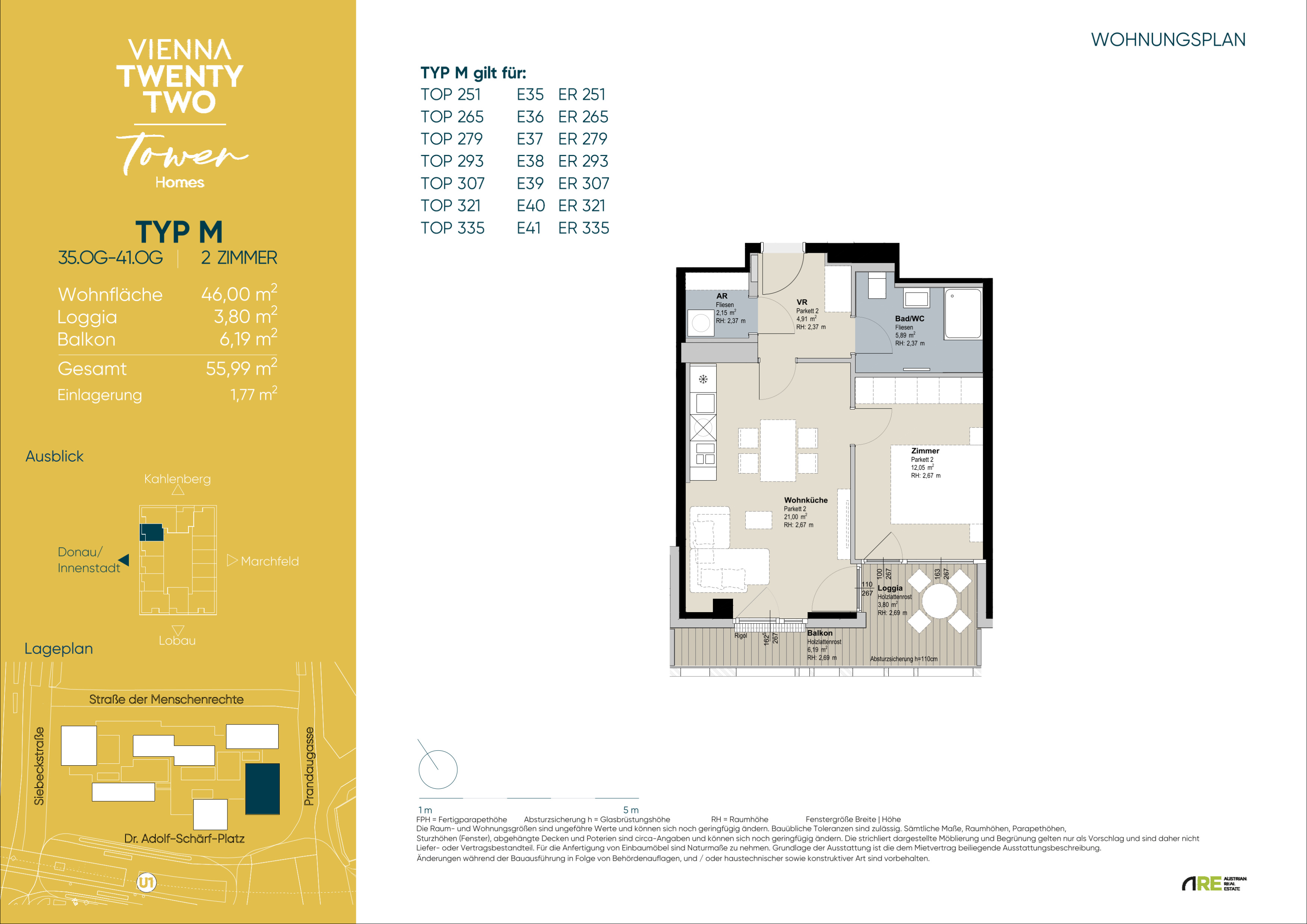 In einzigartiger Lage, direkt bei der U1-Station Kagran und vis-à-vis vom Donau Zentrum, entsteht ein exklusiver, ca. 155m hoher Wohnturm mit 45 Etagen. Die insgesamt 347 Mietwohnungen bieten einen vielfältigen Wohnungsmix: von smart geschnittenen 1,5-Zimmer-Apartments ab ca. 38 m² über komfortable 2-Zimmer-Wohnungen bis hin zu großzügigen 3- und 4-Zimmerwohnungen mit bis zu ca. 80 m².
