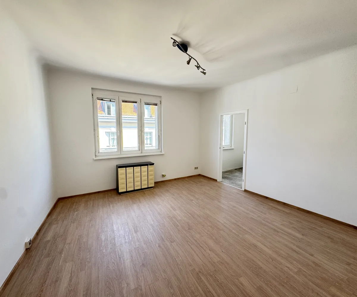Die Wohnung bietet eine Fläche von ca. 55,90 m2. Die Liegenschaft befindet sich in der 4. Etage und besticht mit 2 großzügigen Zimmern, einem Vorraum, einem Badezimmer, einer separaten Küche sowie einem separaten WC sowie Abstellraum. Die westliche Ausrichtung sorgt für ein helles Wohnambiente. Zudem befindet sich die Wohnung in absoluter Ruhelage und bietet eine gute öffentliche Anbindung ans Stadtzentrum.