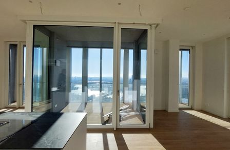 In einzigartiger Lage, direkt bei der U1-Station Kagran und vis-à-vis vom Donau Zentrum, entsteht ein exklusiver, ca. 155m hoher Wohnturm mit 45 Etagen. Die insgesamt 347 Mietwohnungen bieten einen vielfältigen Wohnungsmix: von smart geschnittenen 1,5-Zimmer-Apartments ab ca. 38 m² über komfortable 2-Zimmer-Wohnungen bis hin zu großzügigen 3- und 4-Zimmerwohnungen mit bis zu ca. 80 m².