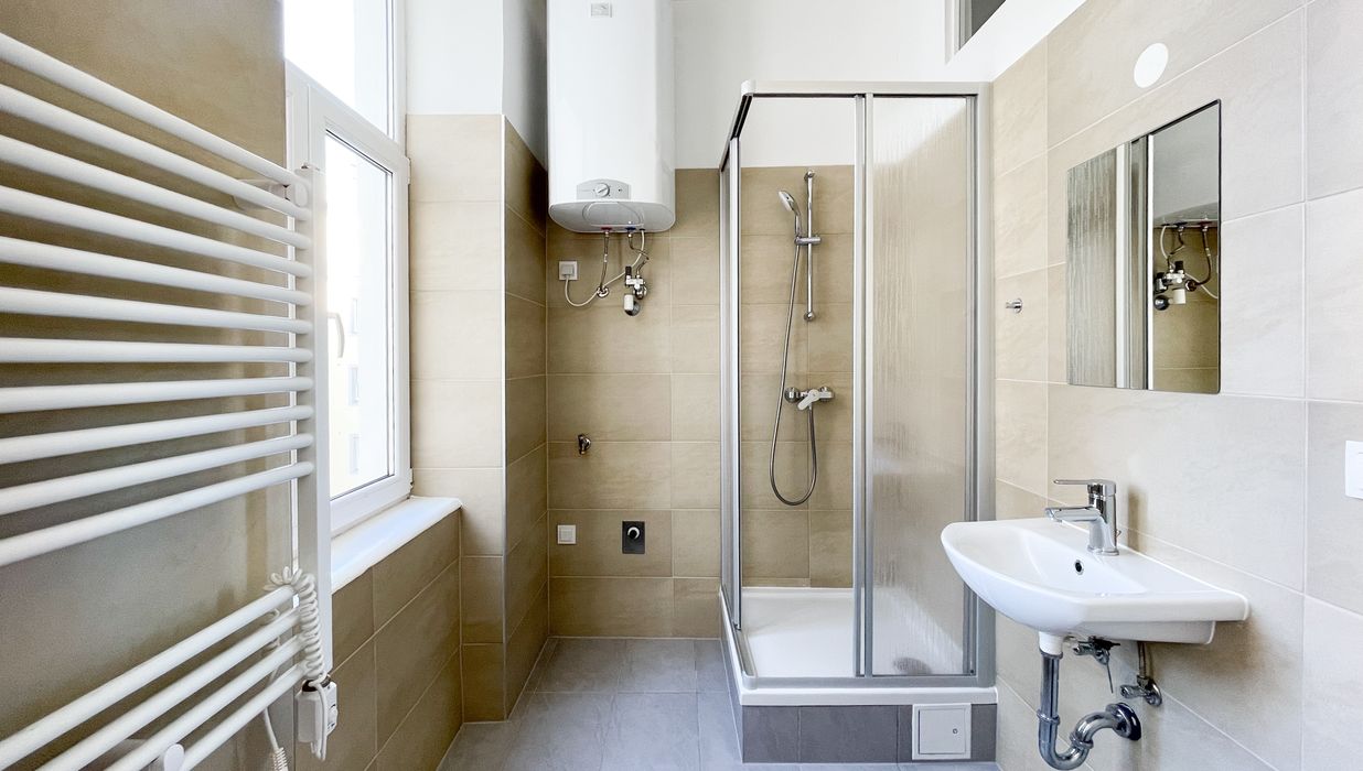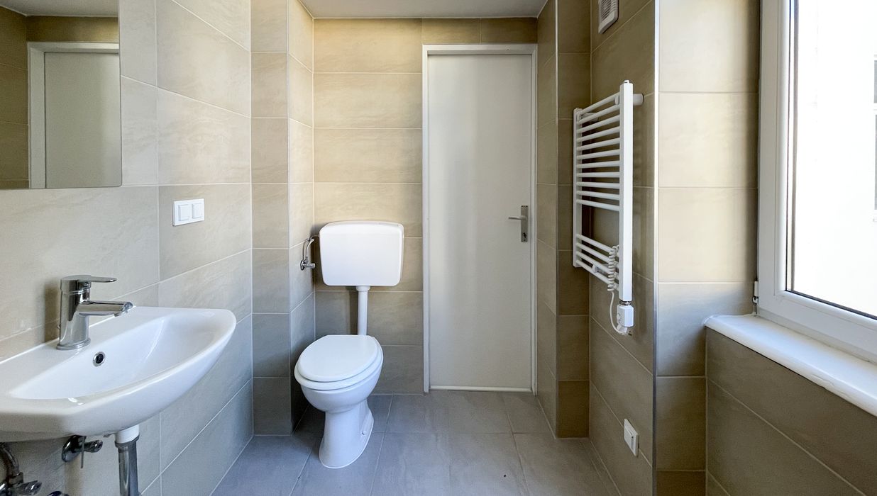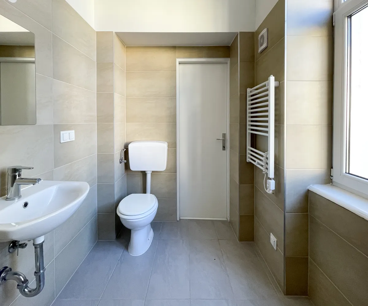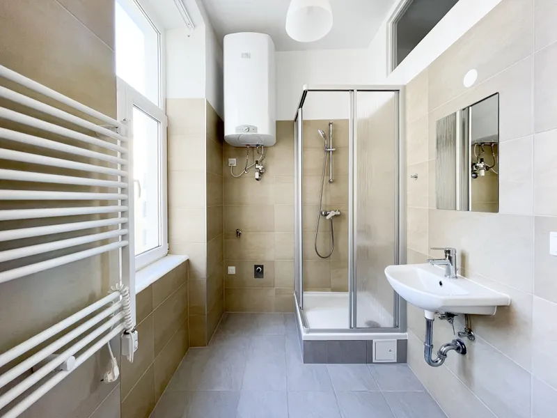 Modernisiertes Badezimmer mit Dusche, WC, Waschmaschinenanschluss und FENSTER