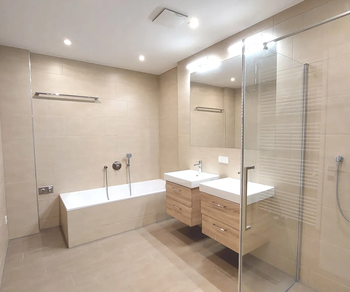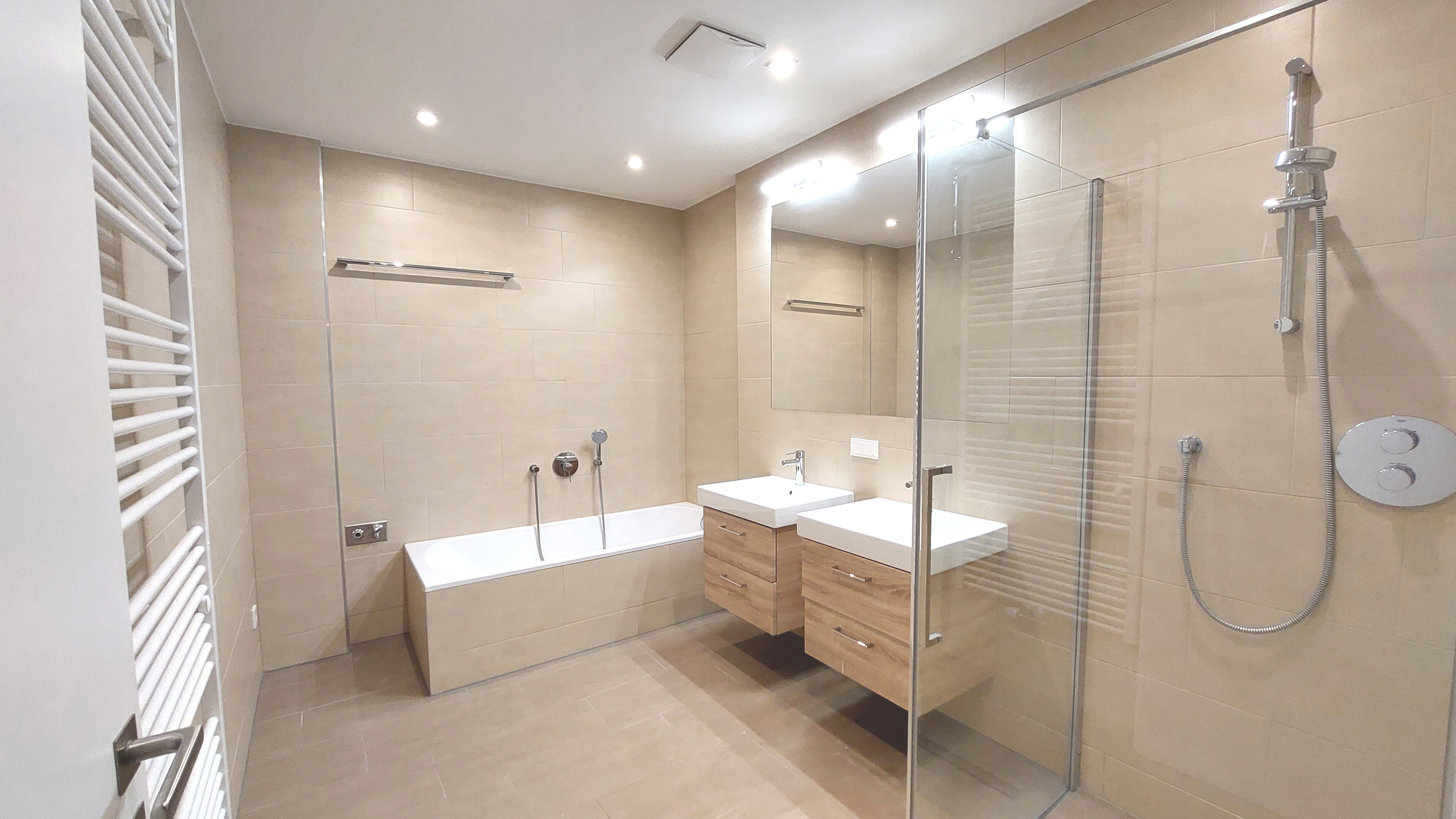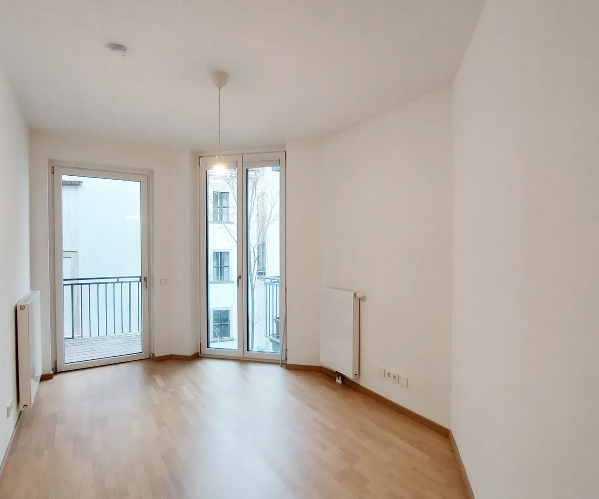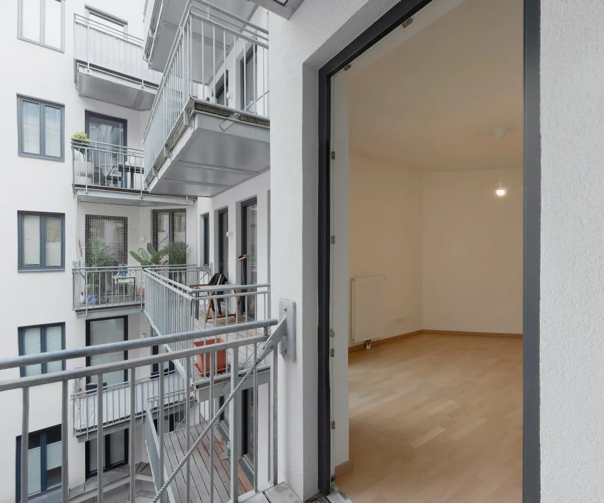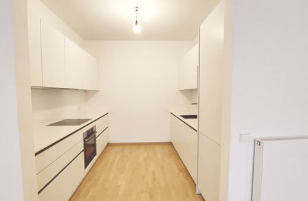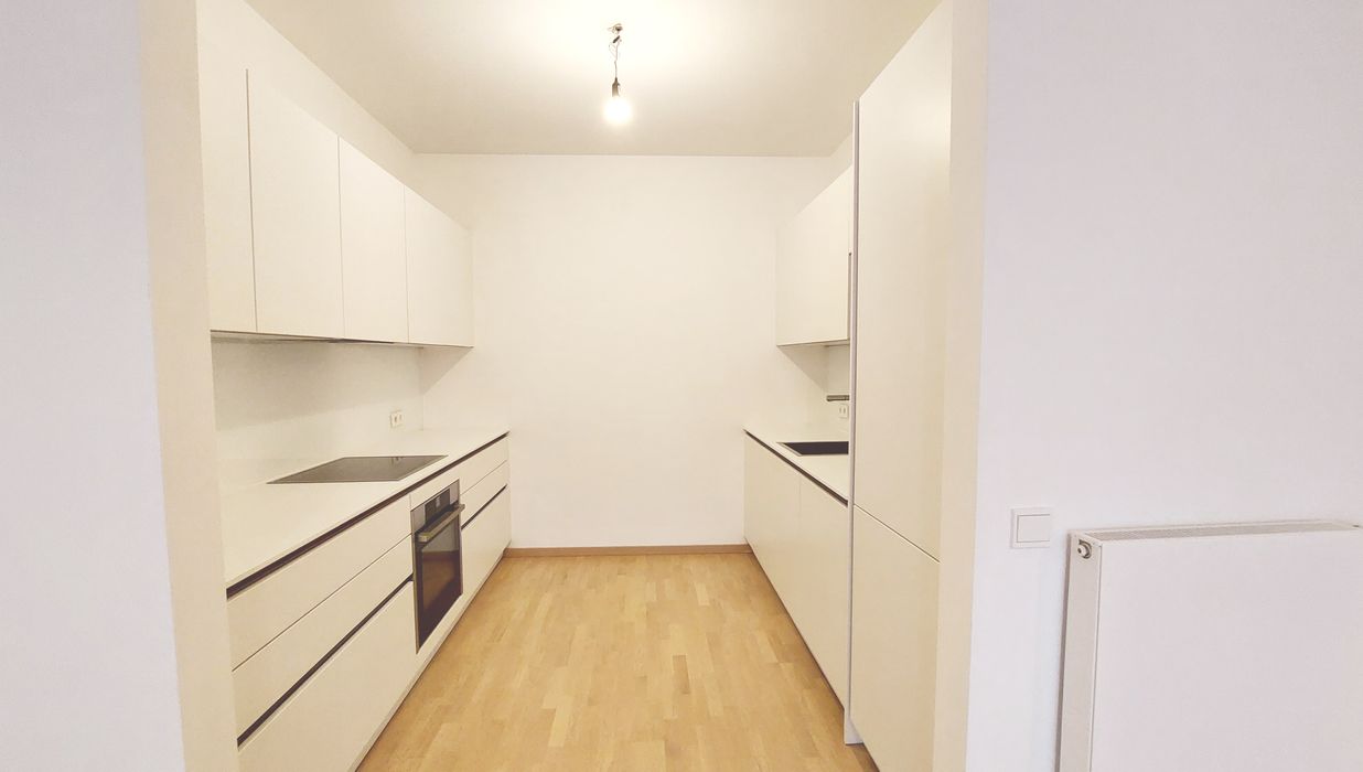 Die Wohnung gliedert sich in eine großzügige Wohnküche mit vollausgestatteter Einbauküche und direktem Zugang auf den Balkon, zwei Schlafzimmer, ein Badezimmer mit Doppelhandwaschbecken, Badewanne, Dusche und Waschmaschinenanschluss, ein separates WC, sowie einen Vorraum.