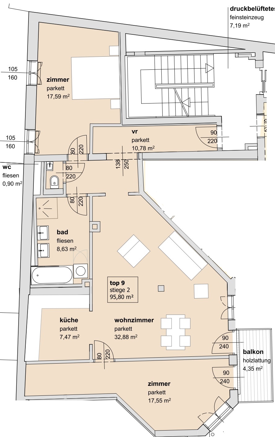 Die Wohnung überzeugt durch ihren durchdachten Grundriss, helle Räume und edle Materialien – ideal für all jene, die das urbane Leben in einem historischen Ambiente schätzen.
