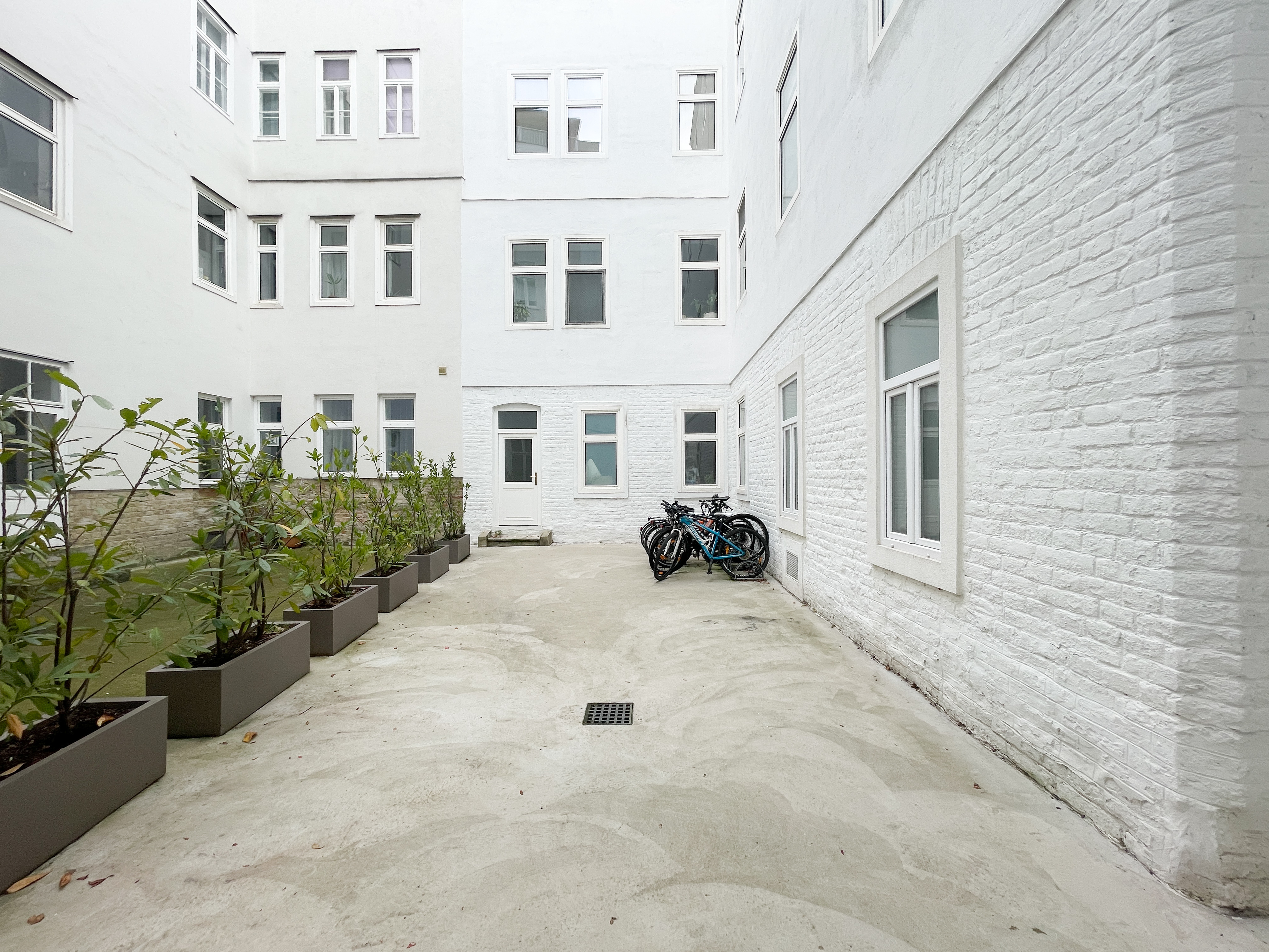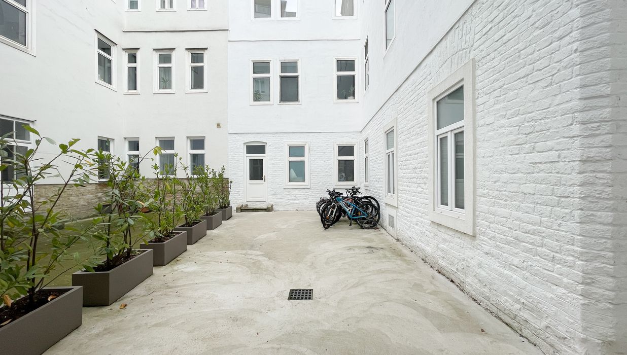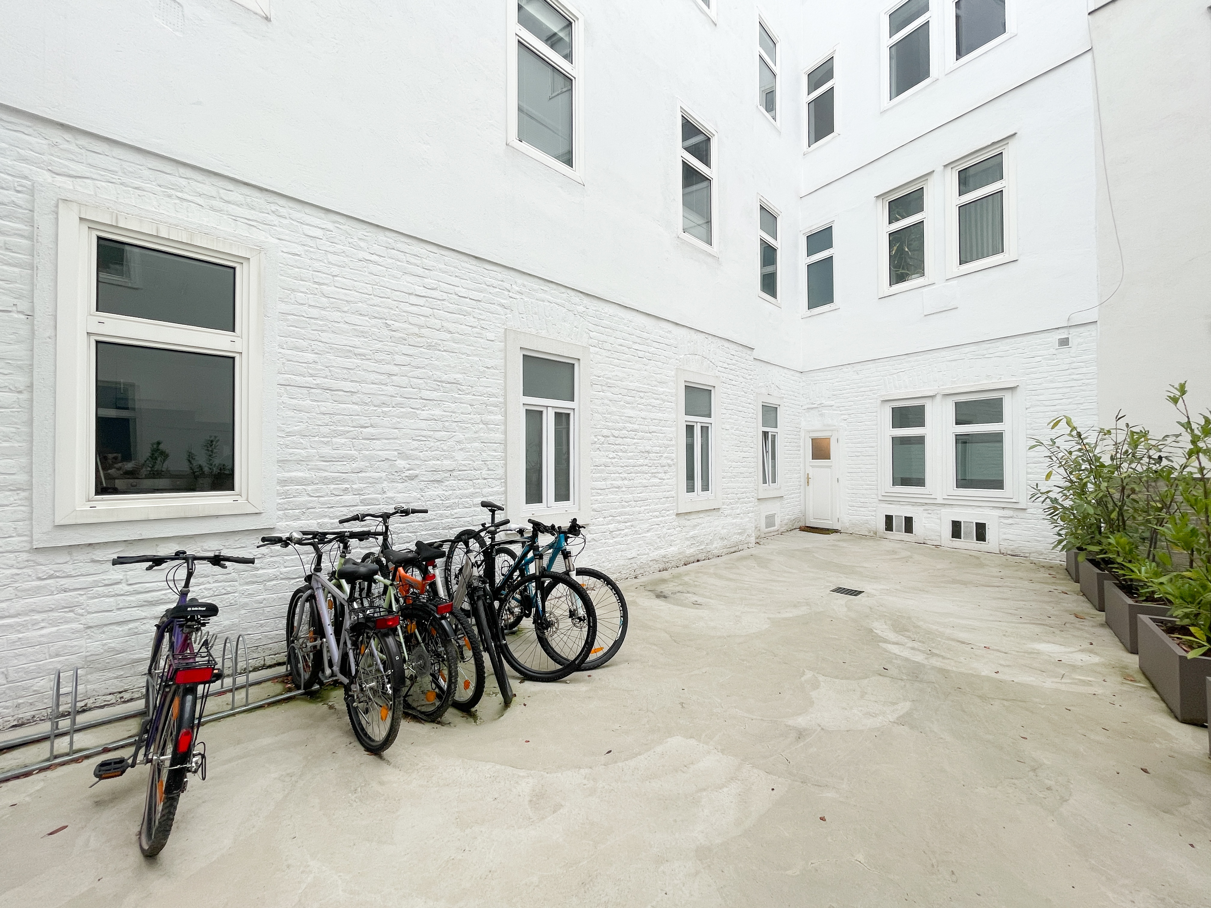 gepflegter Innenhof mit Müllbereich