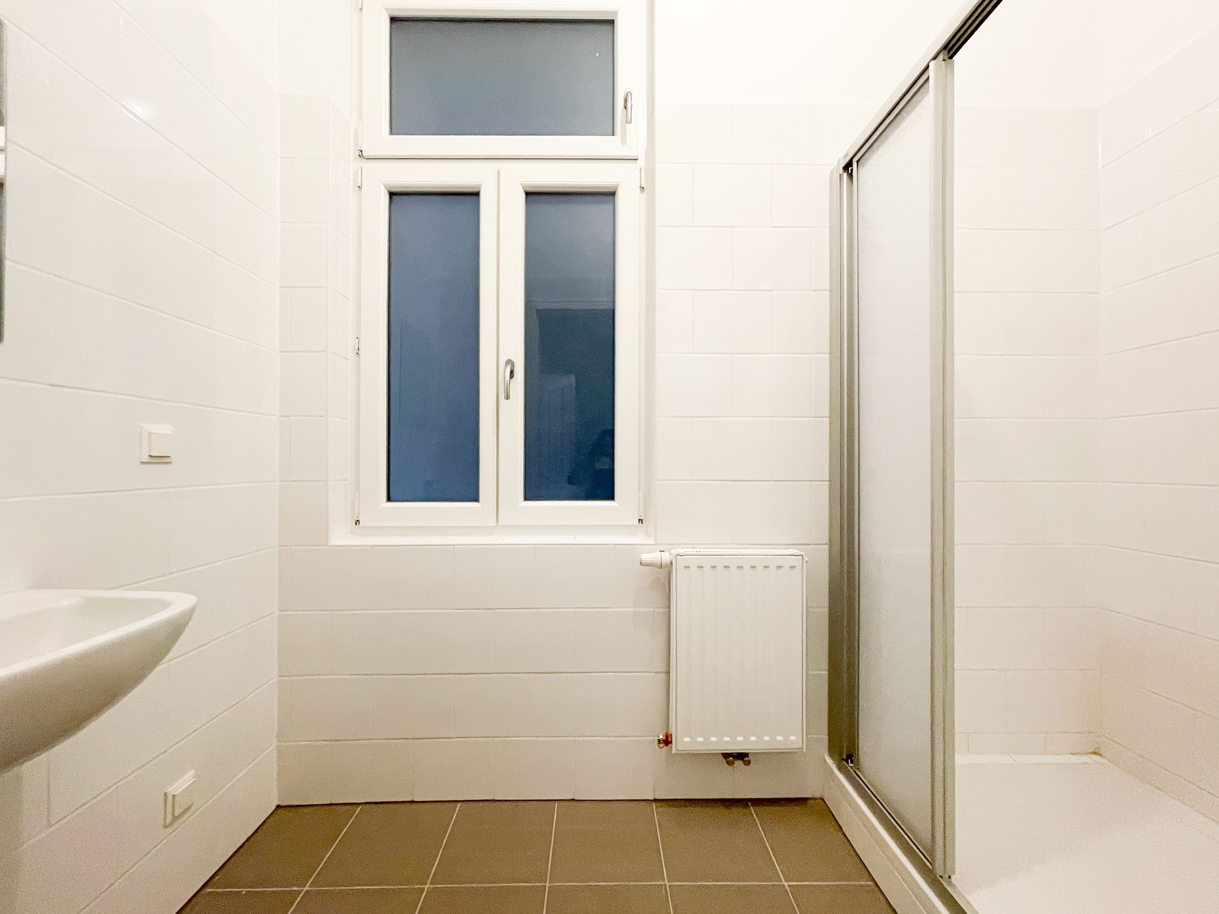 Badezimmer mit Fenster zum Lichthof