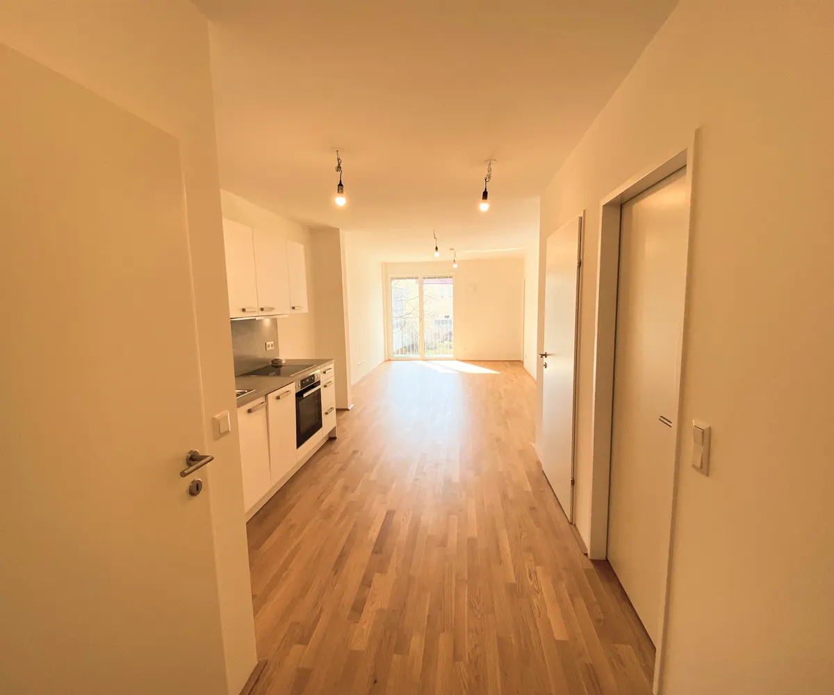 Die mit Echteichenparkettboden ausgestattete Wohnung im 1. Obergeschoss verfügt über alles, was man sich für die perfekte Wohnung wünscht. Über den offenen Vorraum gelangt man direkt in die großzügige mit Miele-Geräten ausgestattete Wohnküche. Hier ist für alles was das Herz begehrt vorgesorgt. Mit großen Fenstern und dem Zugang auf den Balkon bleibt es bis am Abend über hell. Weiters bietet die Wohnung ein Bad mit Badewanne, eine separate Toilette, ein getrennt begehbares Schlafzimmer mit Schrankraum und einen kleinen Abstellraum.