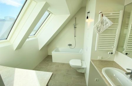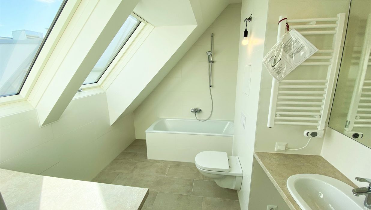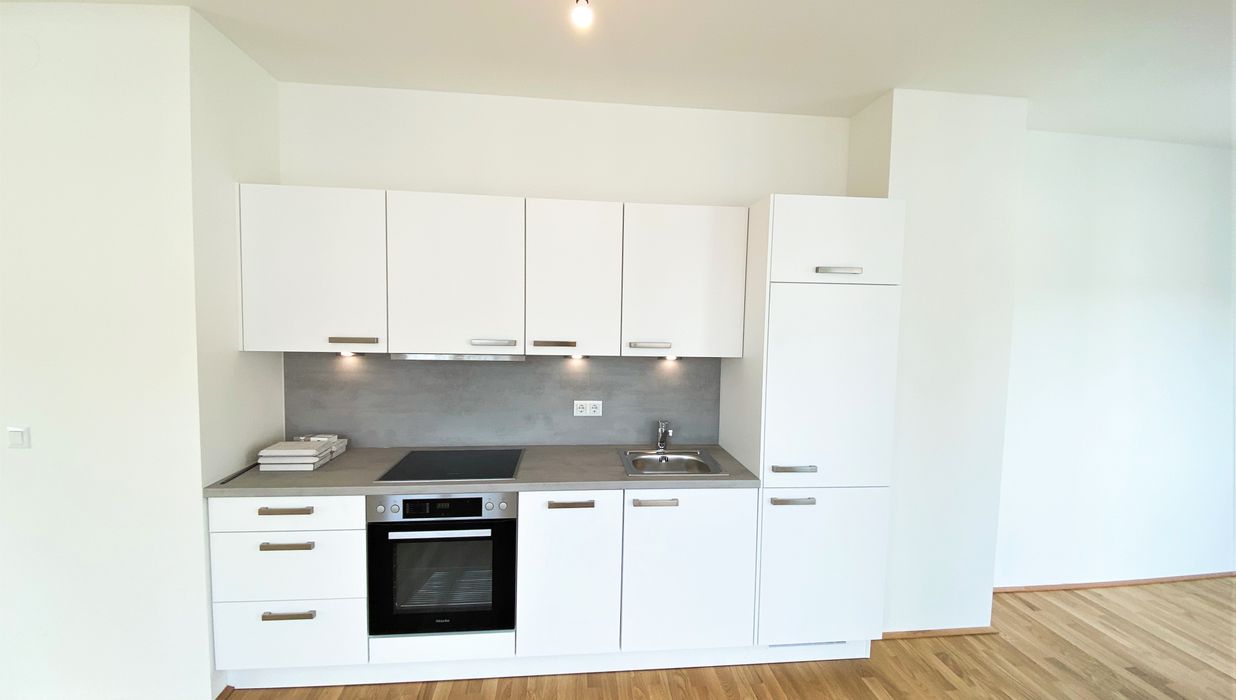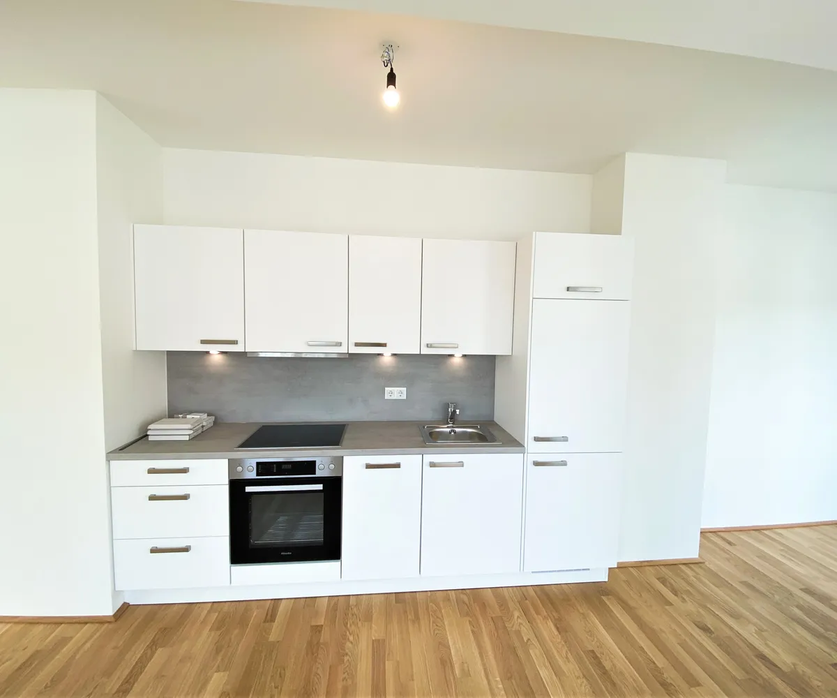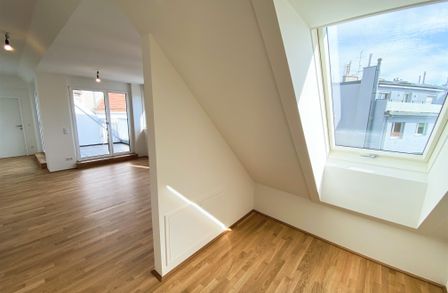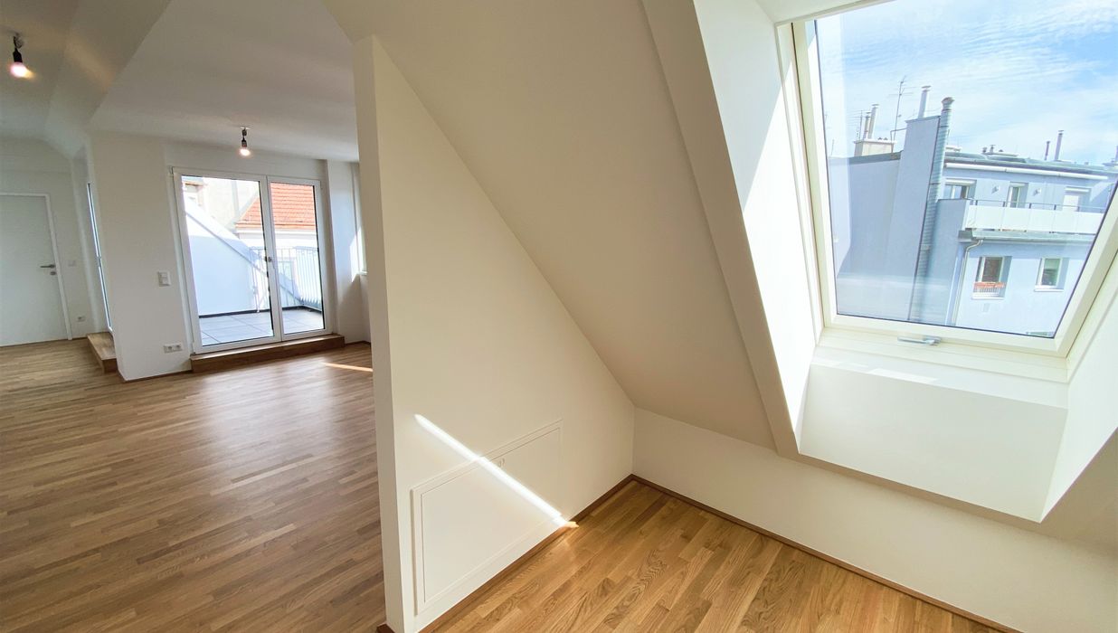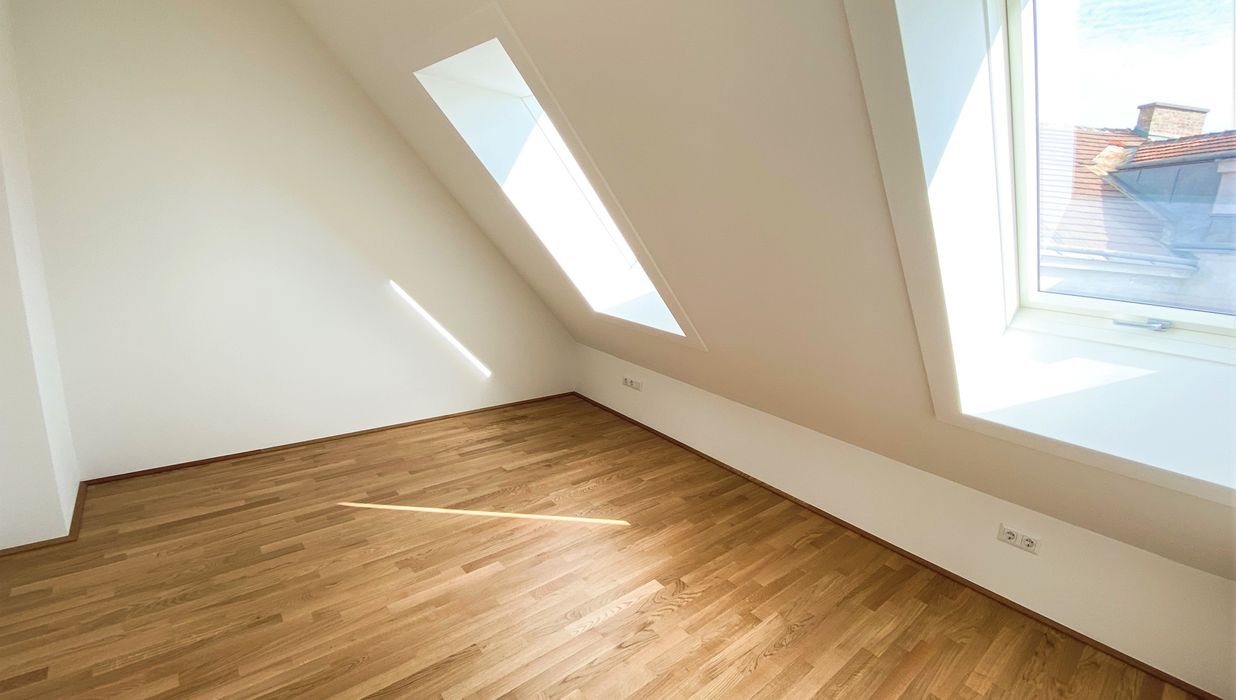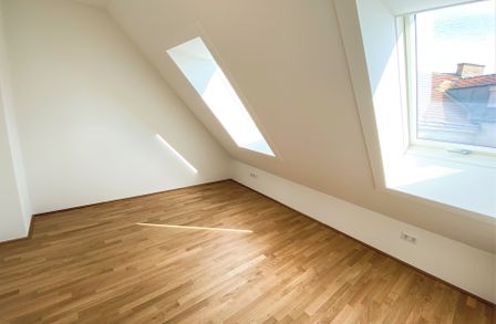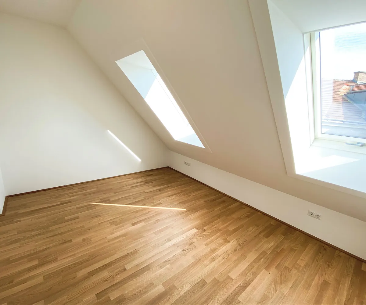 Die mit Echteichenparkettboden ausgestattete Dachgeschosswohnung verfügt über alles, was man sich für die perfekte Wohnung wünscht. Über den offenen Vorraum gelangt man direkt in die großzügige mit Miele-Geräten ausgestattete Wohnküche. Hier ist für alles was das Herz begehrt vorgesorgt. Mit großen Fenstern und dem Zugang auf die Terrasse bleibt es bis am Abend über hell. Das Bad, sowie das Schlafzimmer haben eine Dachschräge. Dies wird vor allem zum Vorteil, wenn man abends aus dem Bett, oder bei einem erholenden Bad in der Wanne von Villeroy & Boch den Sternenhimmel bestaunen möchte. Um Objekte des täglichen Bedarfs zu verstauen, ist die Wohnung mit einem kleinen, aber feinen Abstellraum auch ausgestattet.