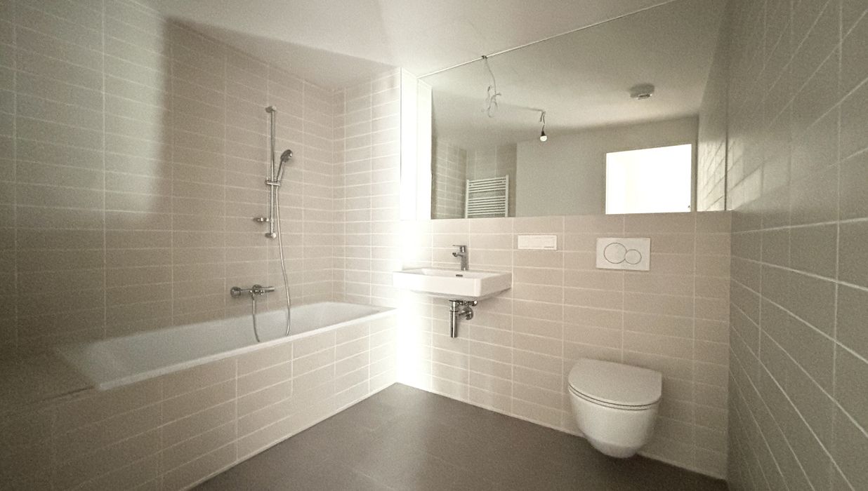 Keramik-Wandfliesen (30 × 60 cm) und Bodenfliesen von Marazzi im Sanitärbereich