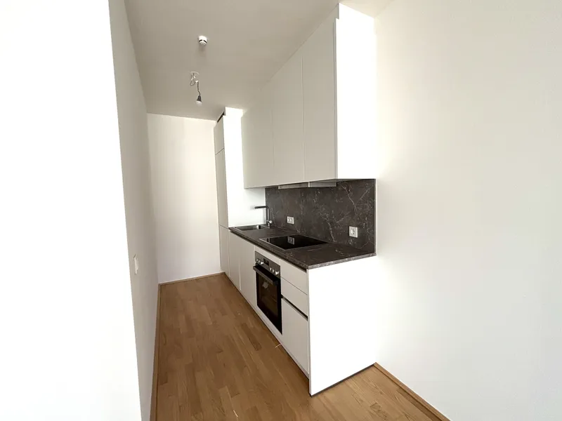 Top 90 ist die ideale Lösung für Paare oder junge Familien . Gleich beim Eingang befindet sich eine kompakte Garderobennische sowie separate Zugänge zum Badezimmer und zum Abstellraum . Vom Vorraum aus gelangt man in den luftigen Koch-/Wohnbereich , der vielfältige Einrichtungskonzepte erlaubt. Das separat gelegene Schlafzimmer bietet ausreichend Platz für ein Queensize-Bett und einen Einbauschrank . Die fast 6 m² große Loggia , die vom Wohnzimmer aus zugänglich ist, lädt dazu ein, Abende mit tollem Ausblick über Wien zu genießen .