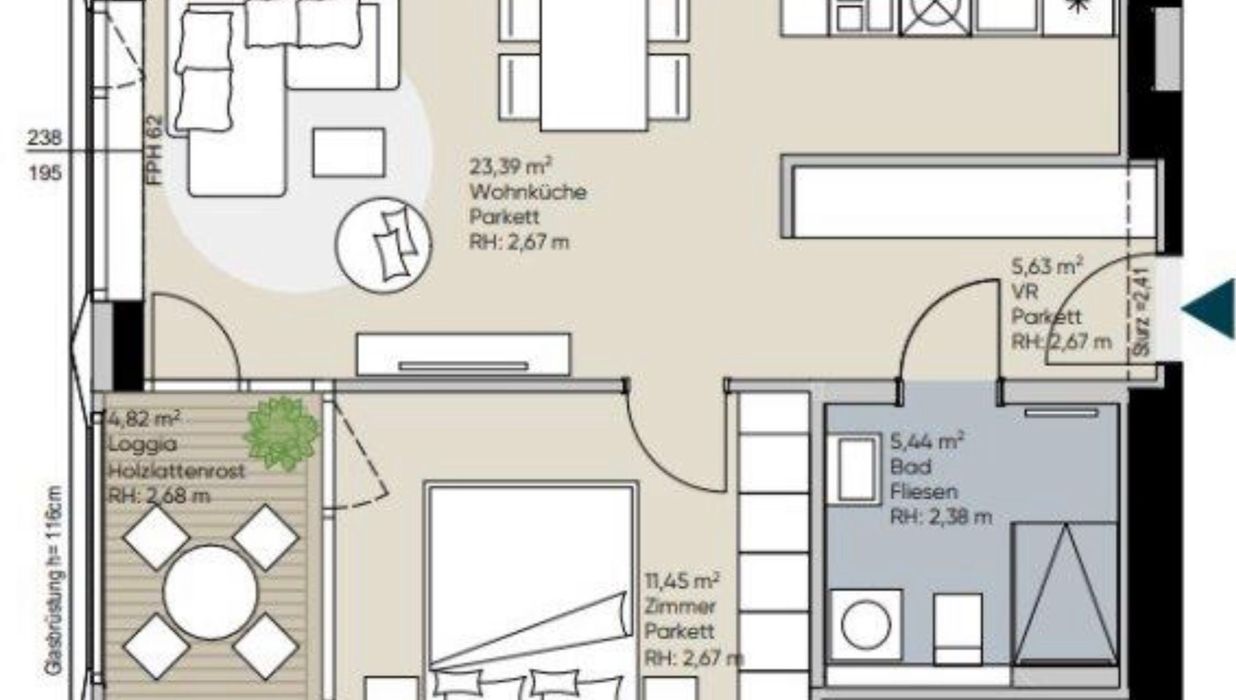 3) TOP 92: 48,83 m² Brutto Miete: EUR 1562,56 (inklusive USt., Betriebskosten und Verwaltung)
