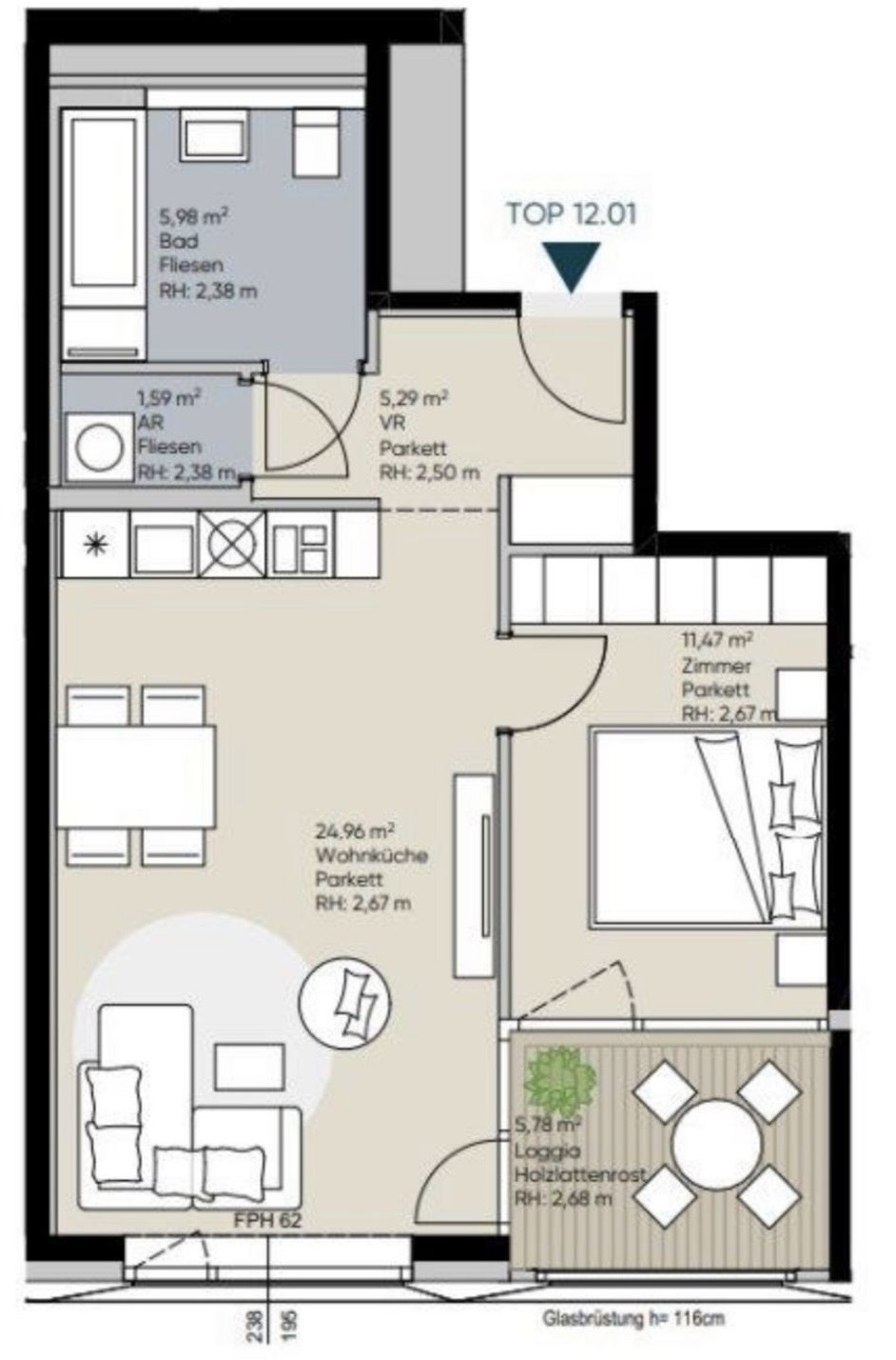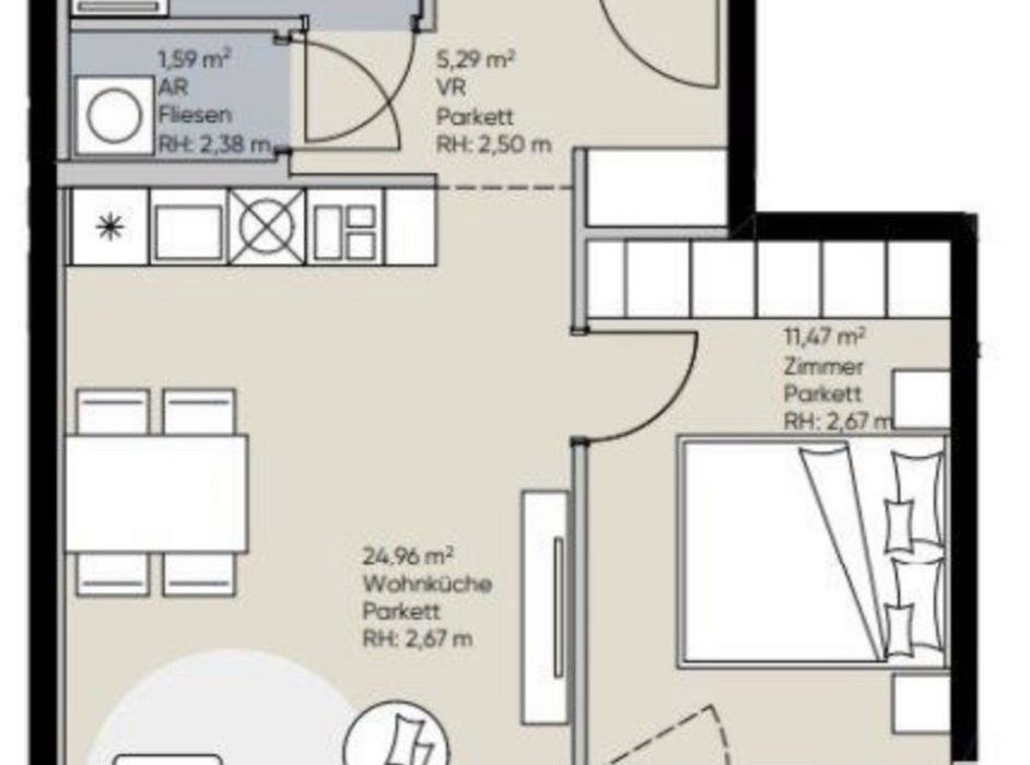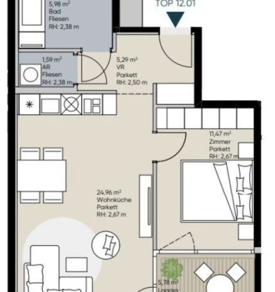 6) TOP 103: 49,68 m² Brutto Miete: EUR 1429,00 (inklusive USt., Betriebskosten und Verwaltung)
