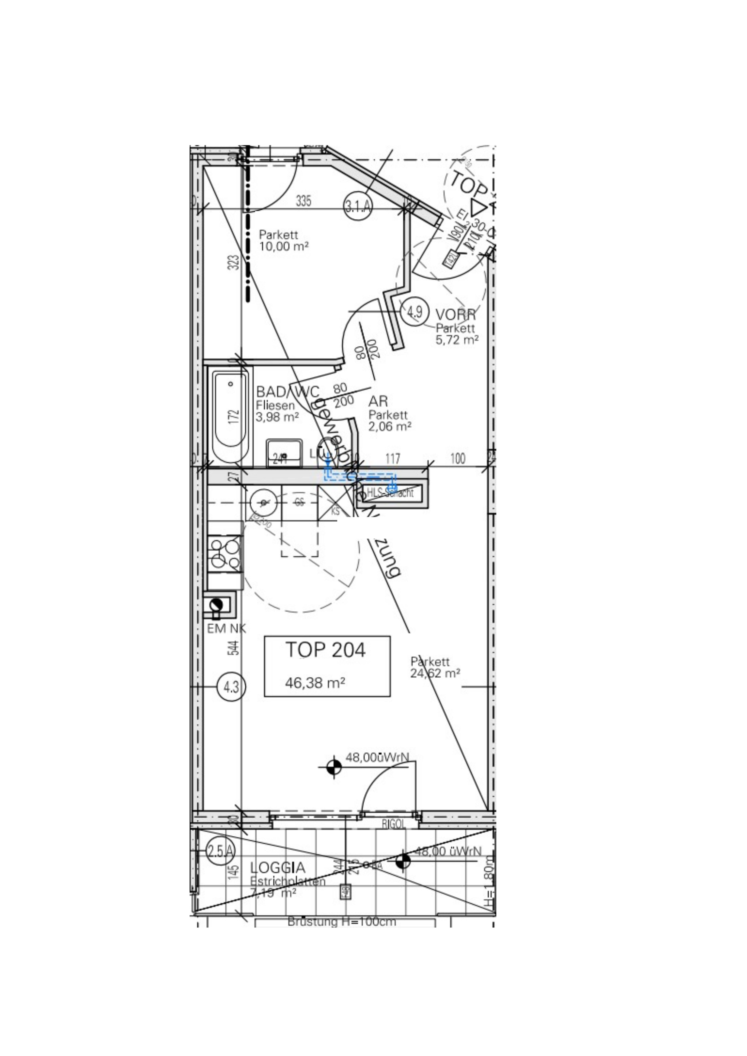 Die Wohnung befindet sich im 2. Obergeschoss und verfügt über eine Wohnküche mit vollausgestatteter Küche, ein Schlafzimmer, ein Badezimmer mit Badewanne und WC, sowie einen Vorraum. Die gemütliche Loggia bietet einem Zeit an der frischen Luft und rundet die Wohnung perfekt ab.