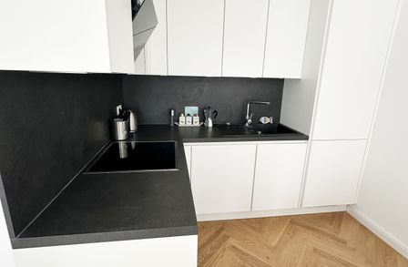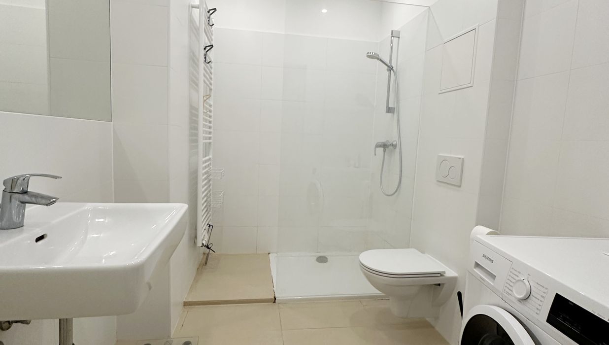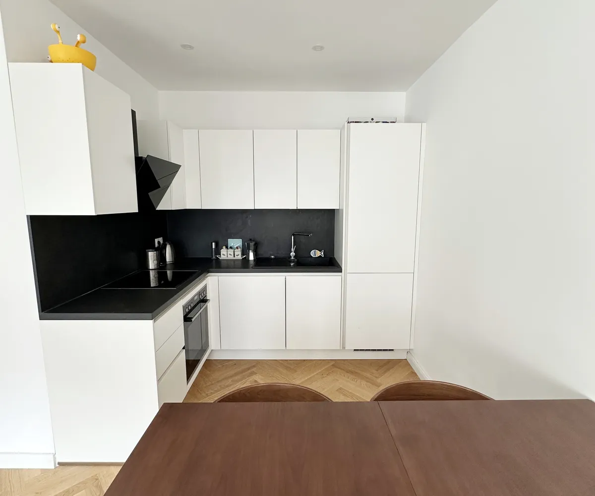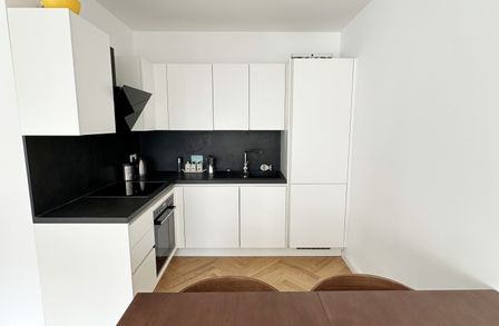 Die Wohnung selbst befindet sich im 4. Obergeschoß und verfügt über ein großes Wohnzimmer mit vollausgestatteter Küche, ein Schlafzimmer, ein Badezimmer mit WC, Dusche und Waschmaschinenanschluss, sowie einen Vorraum. Die gemütliche Loggia rundet das Wohnerlebnis perfekt ab.