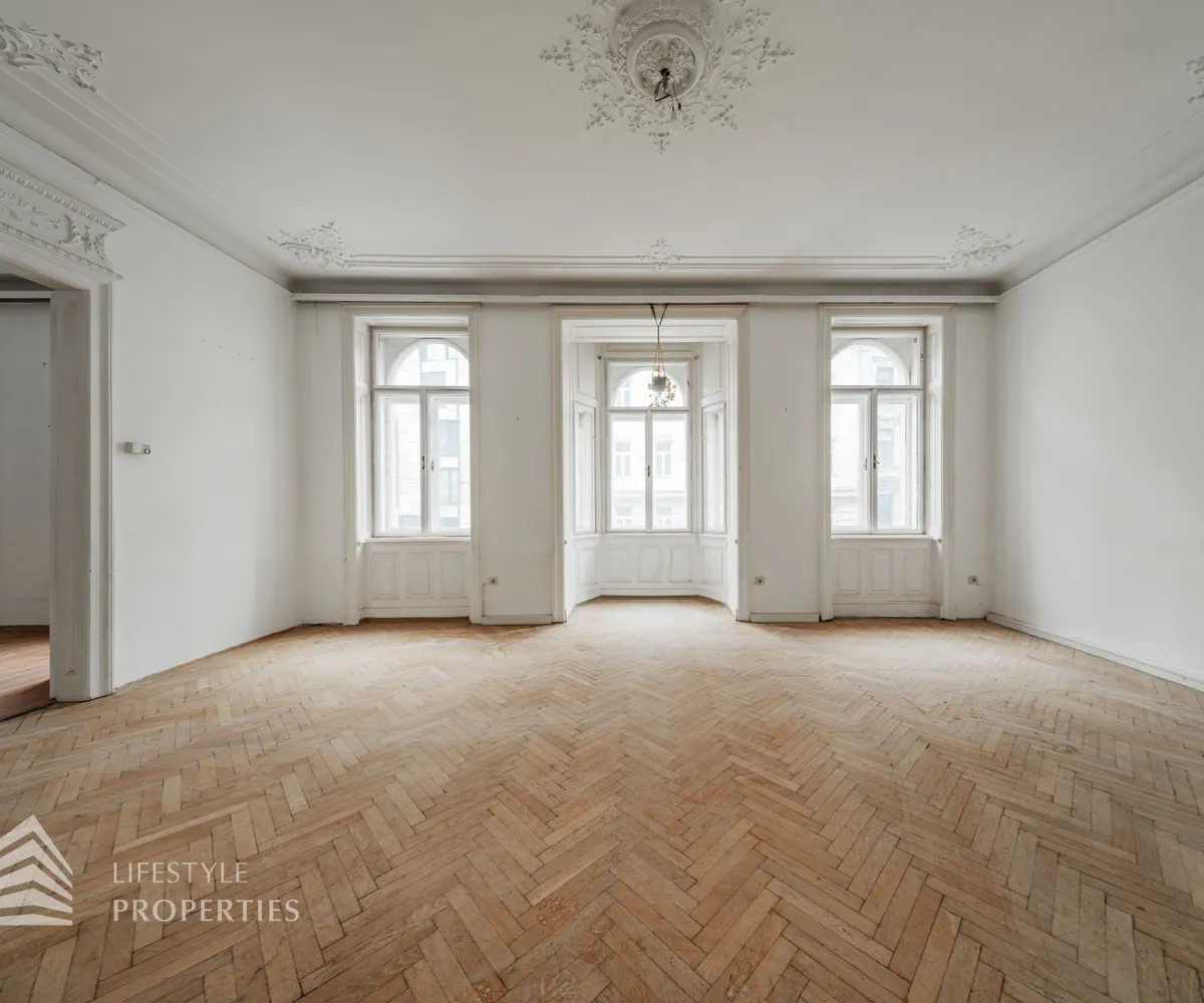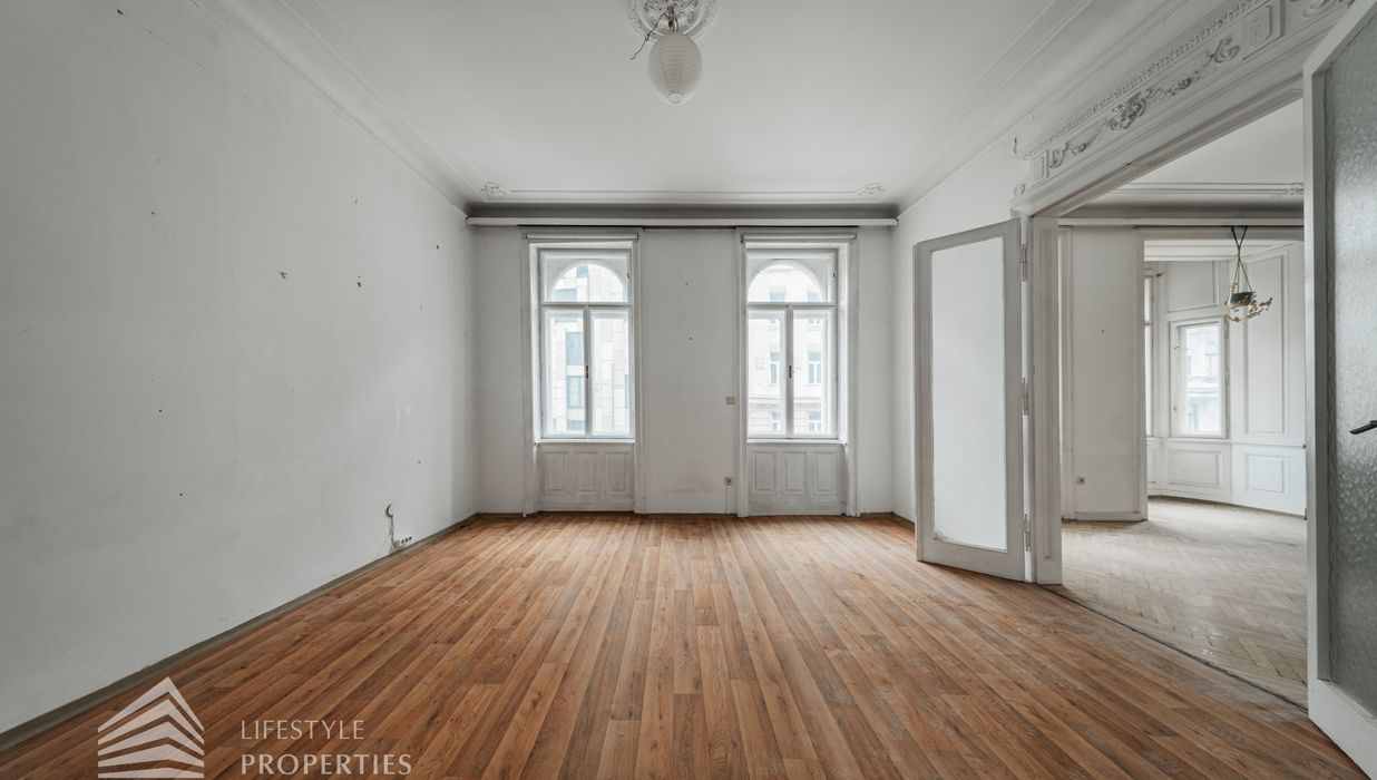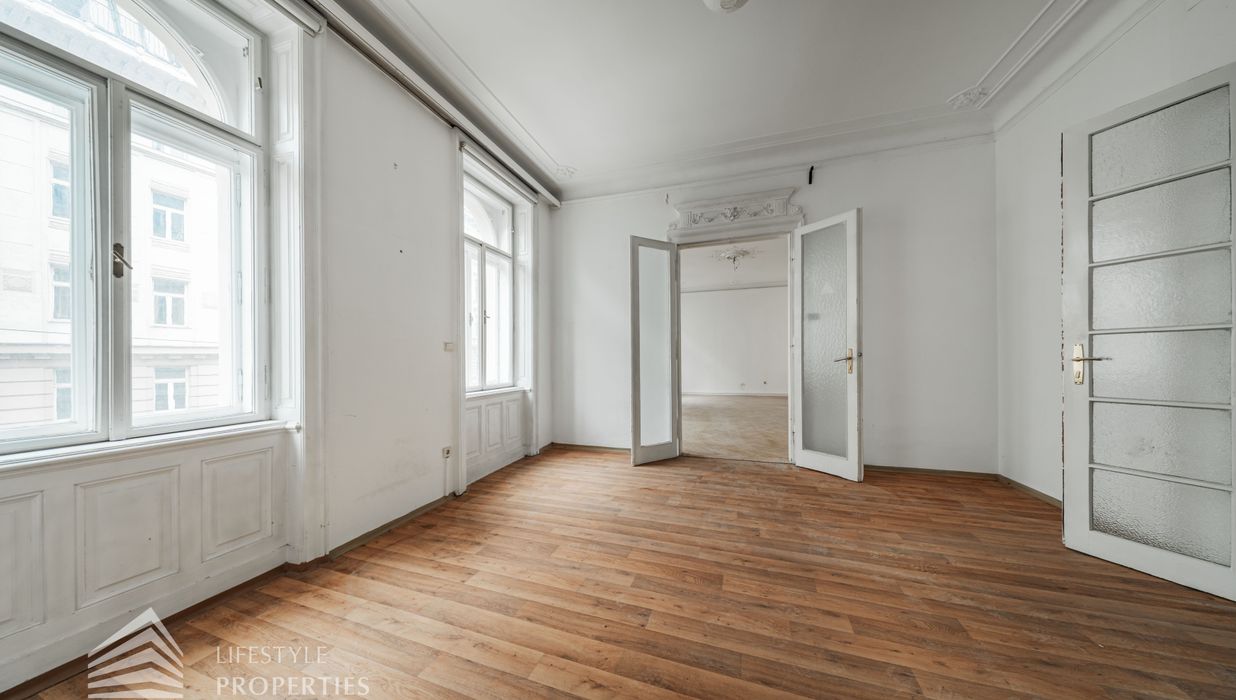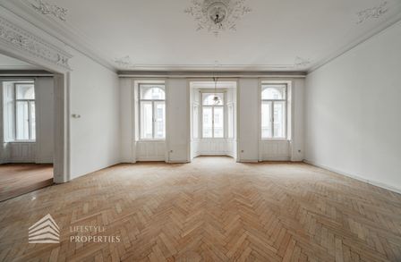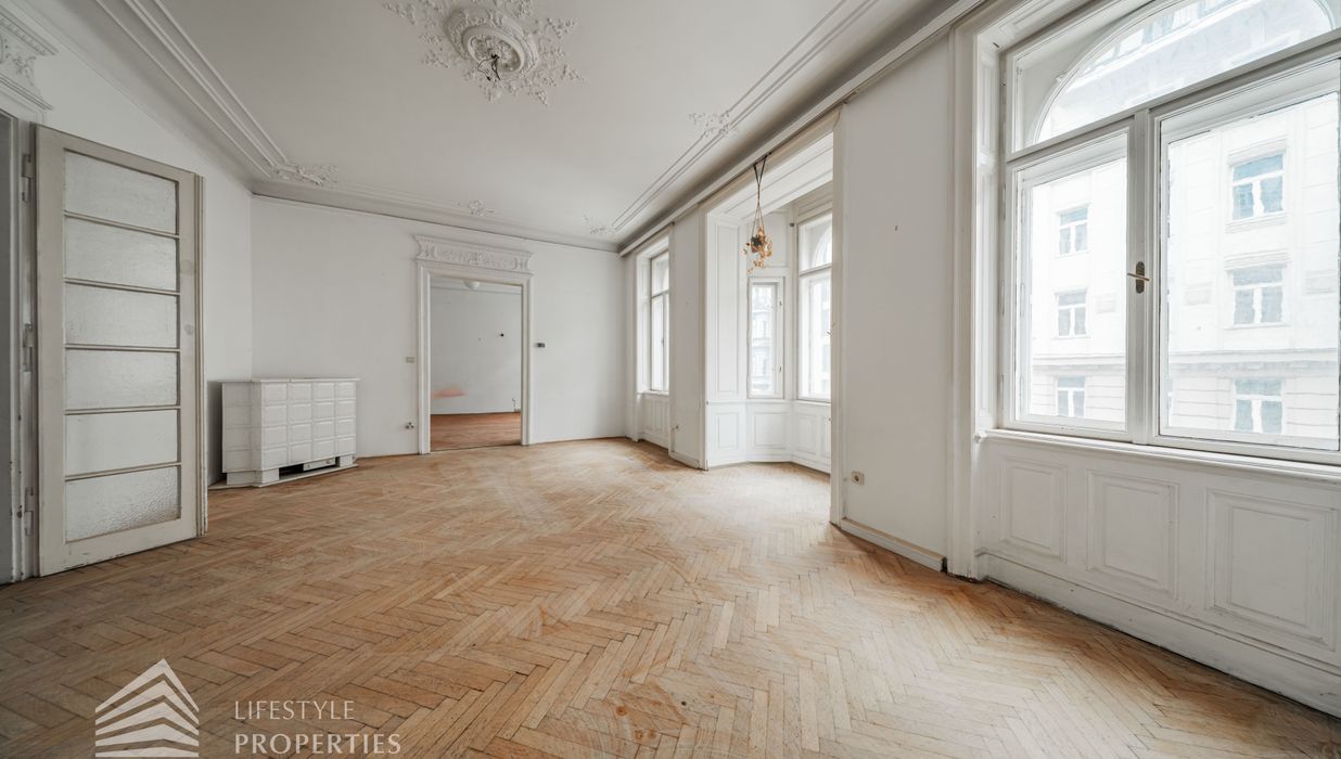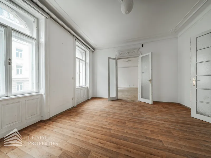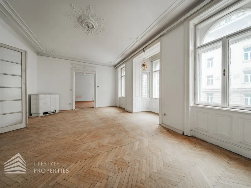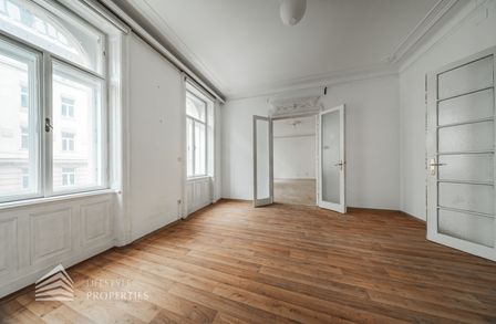 Diese imposante Altbauwohnung sprüht nur so von Wiener Architekturgeschichte. Gerade wegen des renovierungsbedürftigen Zustandes hat diese Wohnung einzigartiges Entwicklungspotenzial.