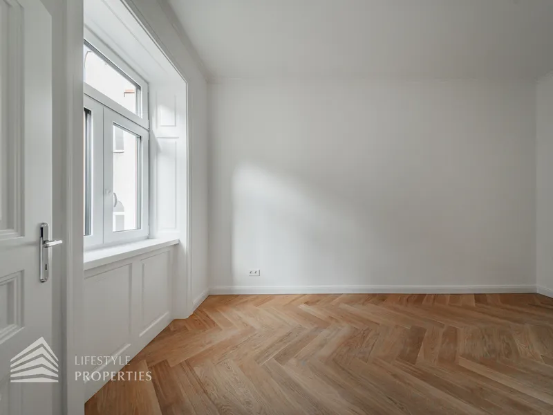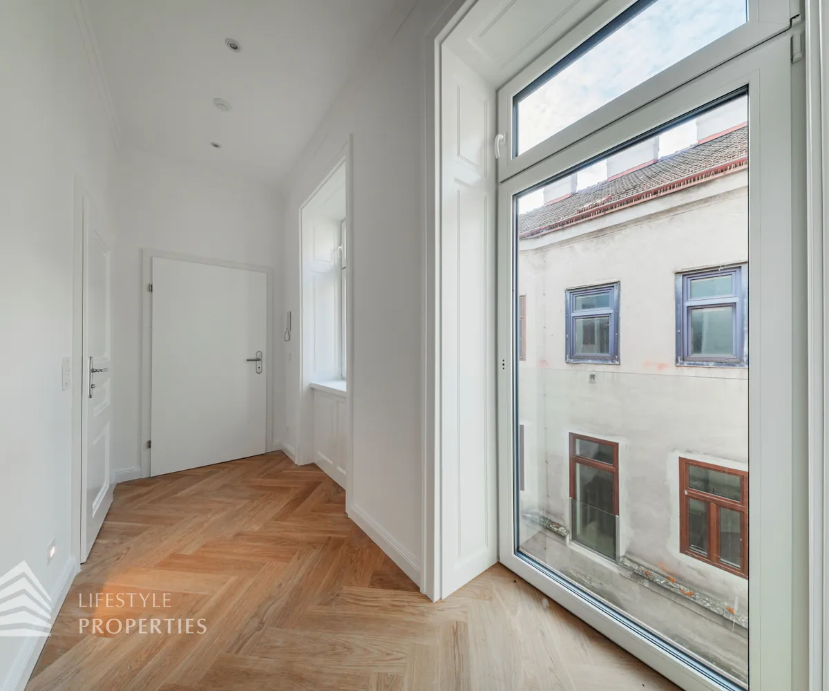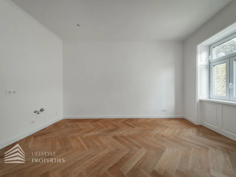 Die Wohnung wurde saniert und verfügt über einen Fischgrät-Eichenparkett und ist mit stilvollen Kassettentüren ausgestattet. Eleganter Deckenstuck und feine Vertäfelungen unterstreichen den einzigartigen Alt-Wien-Charakter. Das Bad und das WC bestechen durch hochwertige Marken-Armaturen & Keramiken.