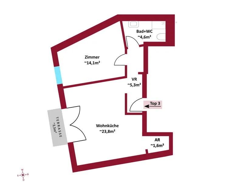 Sie verfügt über ca. 41 m² und befindet sich im 1. Stock eines schönen Altbaus. Die Wohnung gliedert sich in einen Vorraum, einen Wohnraum, ein Schlafzimmer, eine Küche, ein Badezimmer mit WC.