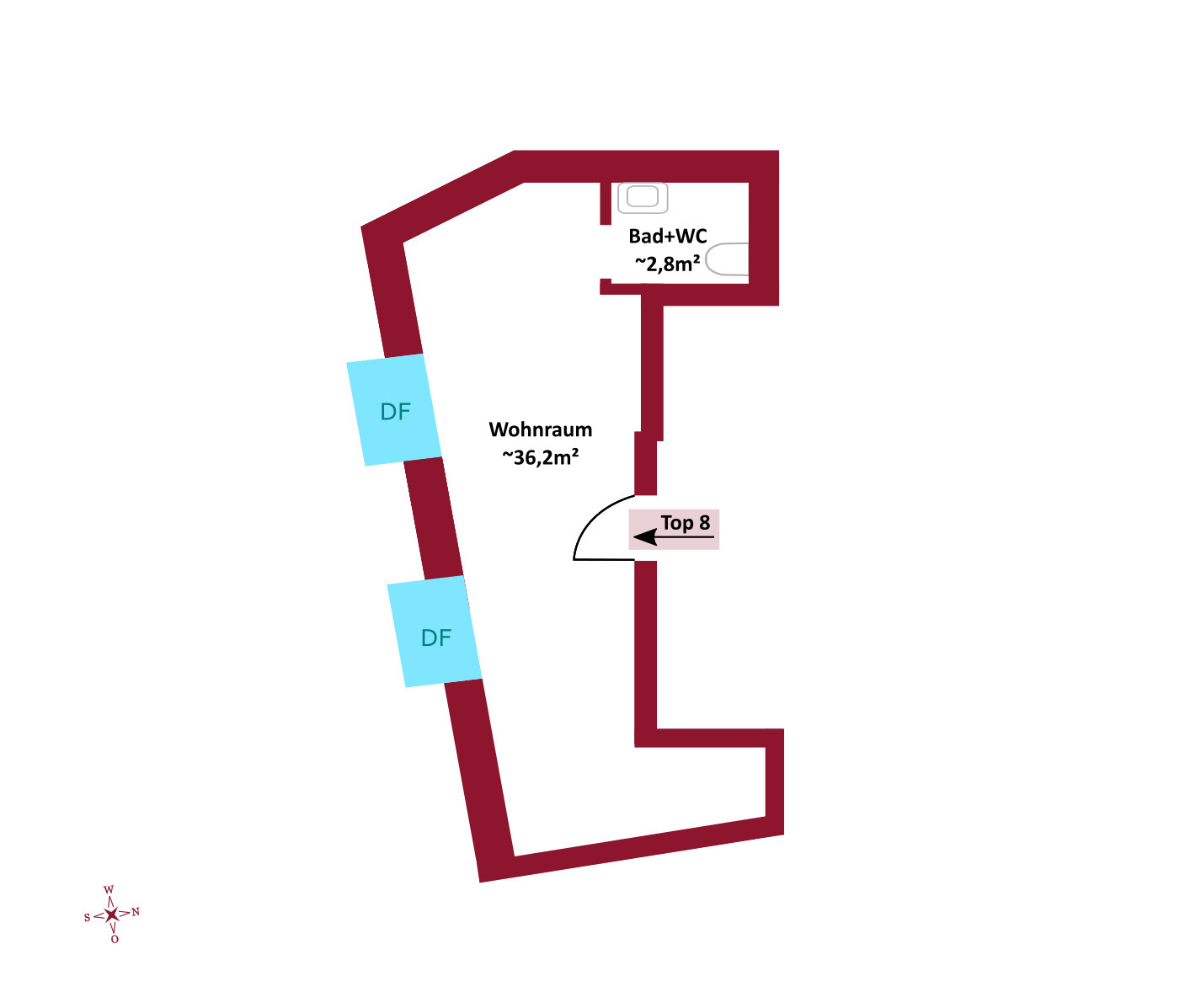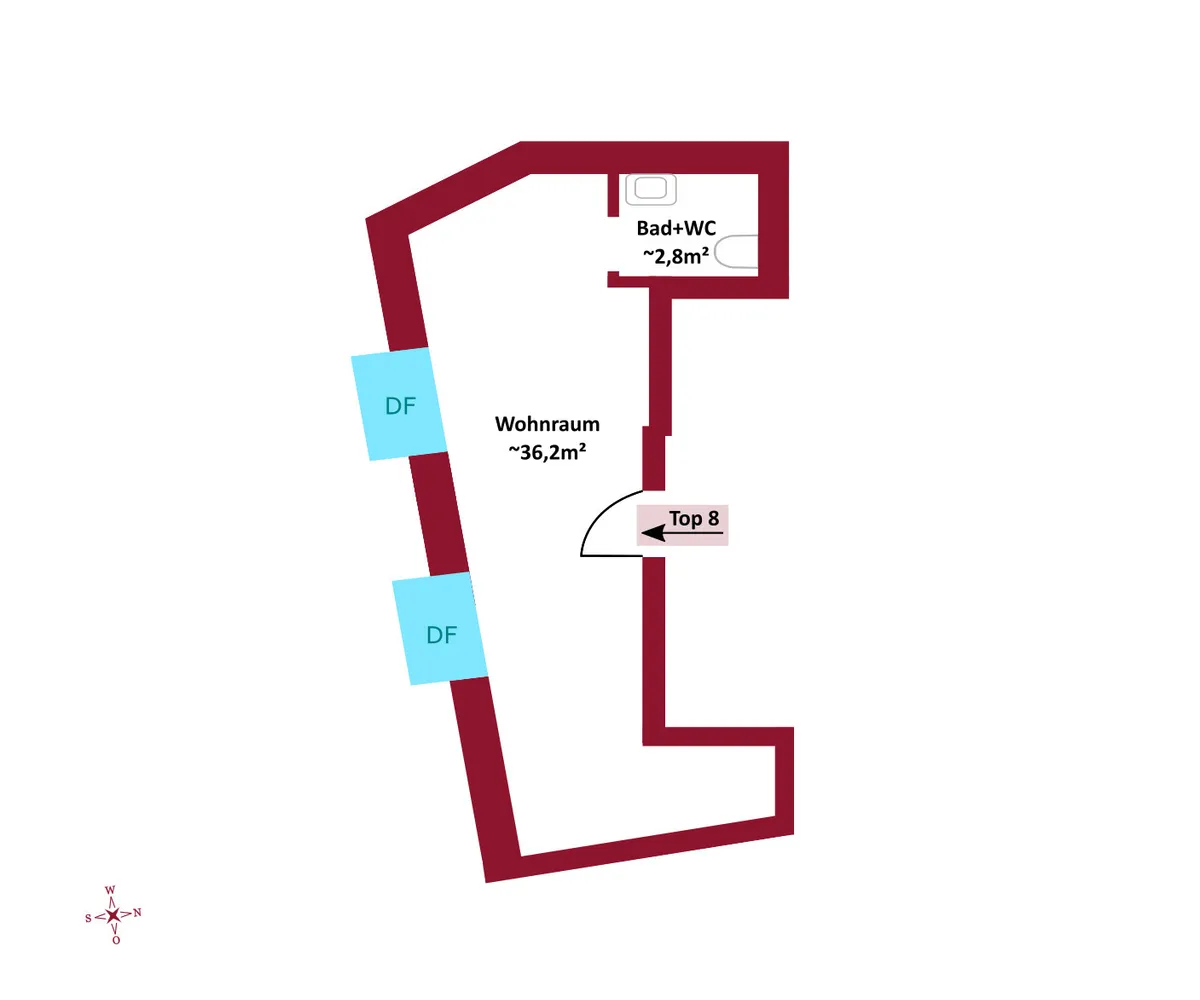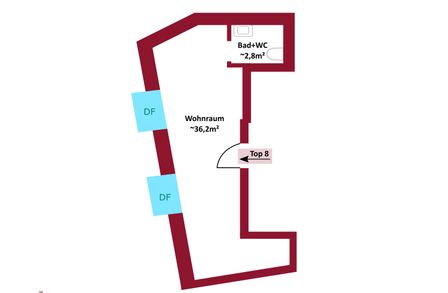 Top 4: ca. 56 m² WNFL, monatliche Miete beträgt 1075,-- Euro (inkl. Betriebskosten, 10% Umsatzsteuer)