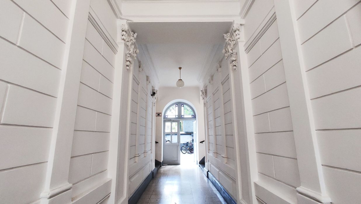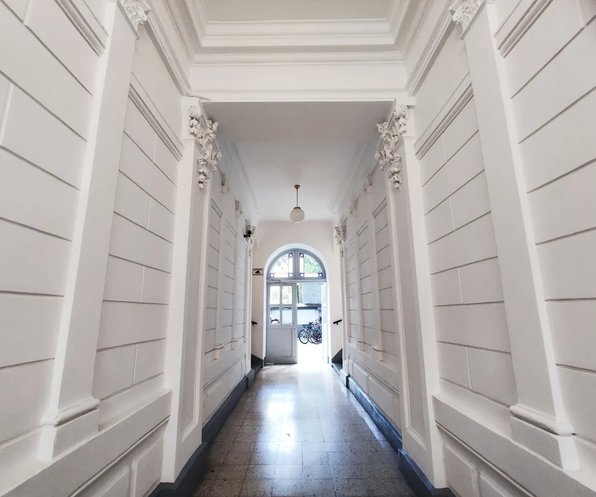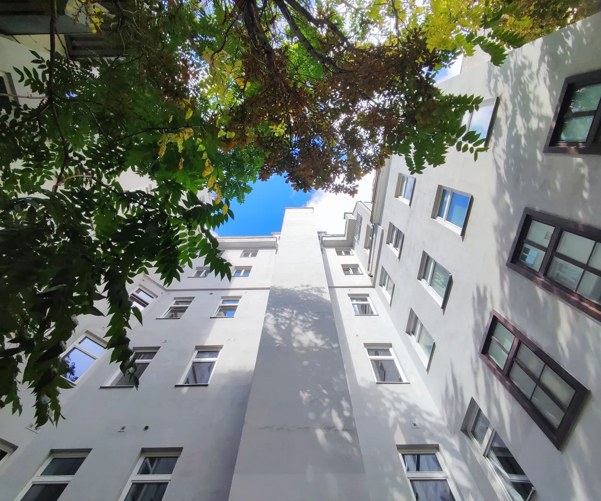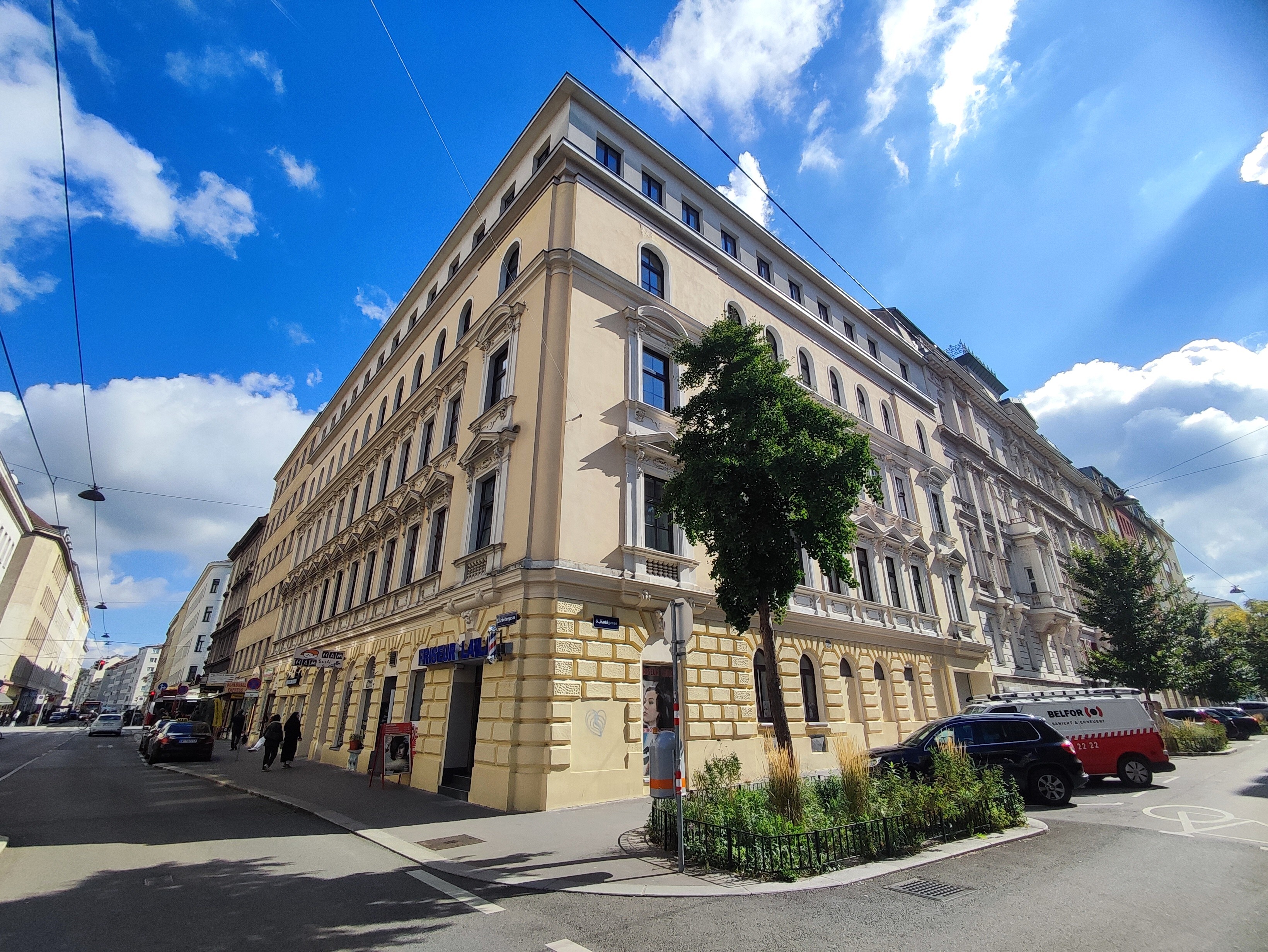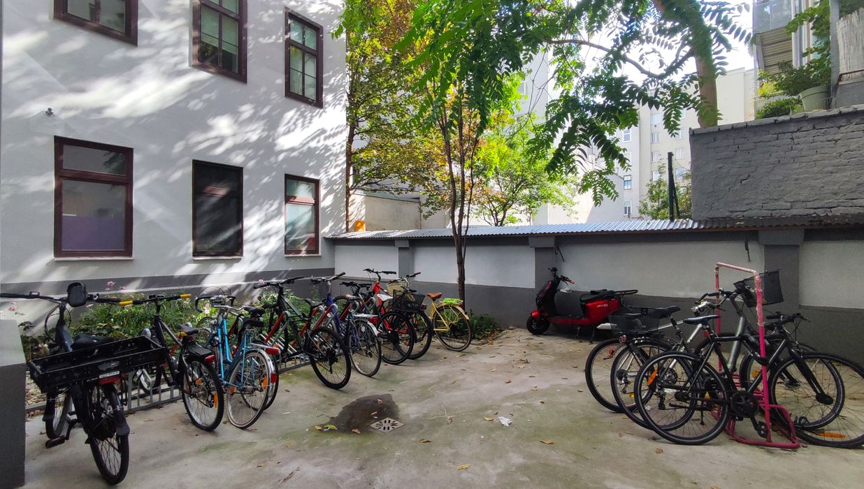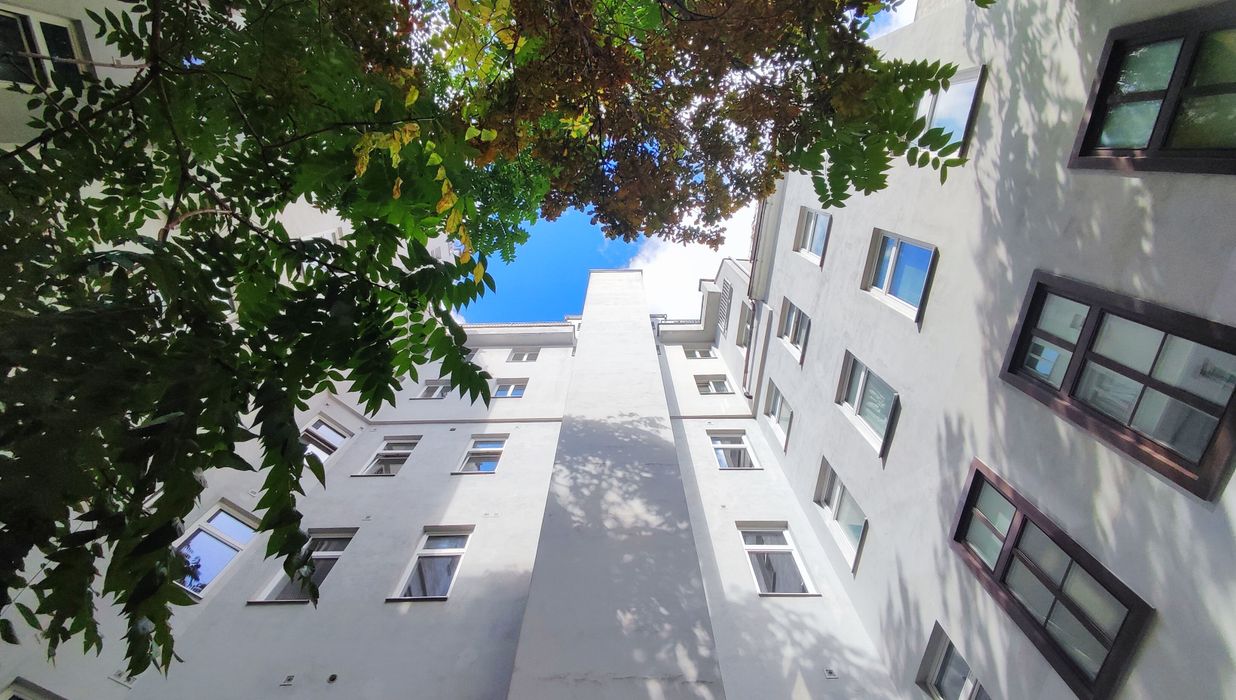 Die straßenseitigen und hofseitigen Fassaden wurden trockengelegt, neu verputzt und frisch gestrichen, das Stiegenhaus wurde ausgemalt und mit moderner LED-Beleuchtung ausgestattet, und im Keller sorgt eine neue Be- und Entlüftungsanlage für ein gutes Klima. Zudem wurde der Innenhof mit Fahrradabstellplätzen entsiegelt, begrünt und neu gestaltet.