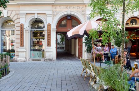 Zentrale, aber ruhige Lage im Innenhof des historischen Adlerhofs