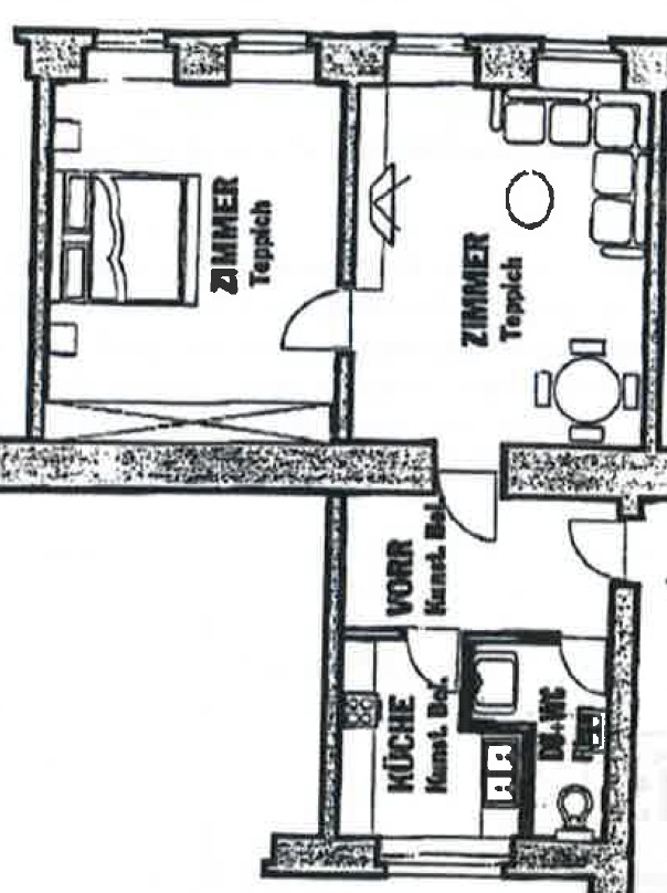 Die Wohnung verfügt über eine Wohnfläche von rund 45 m² und gliedert sich wie folgt: