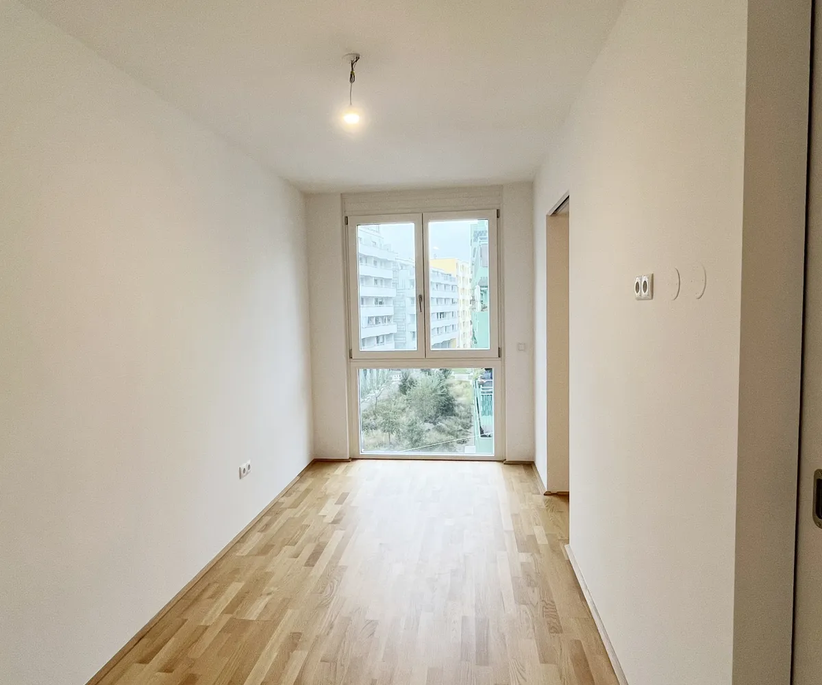 Eichenparkettböden, Holz-Alu-Fenster und Außenjalousien schaffen ein stilvolles Ambiente mit natürlicher Wärme. Dank Smart-Home-Vorbereitung, Fußbodenheizung und Raumkühlung über Bauteilaktivierung genießen Bewohnerinnen und Bewohner ein ausgewogenes Wohnklima zu jeder Jahreszeit.