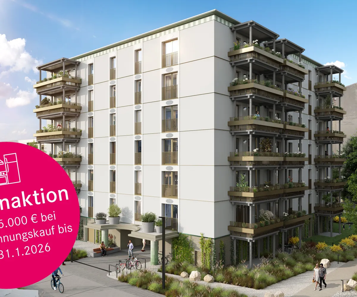 Beim Kauf einer 3- oder 4-Zimmerwohnung kann ein Kfz-Stellplatz in der hauseigenen Tiefgarage um € 44.000,- erworben werden.