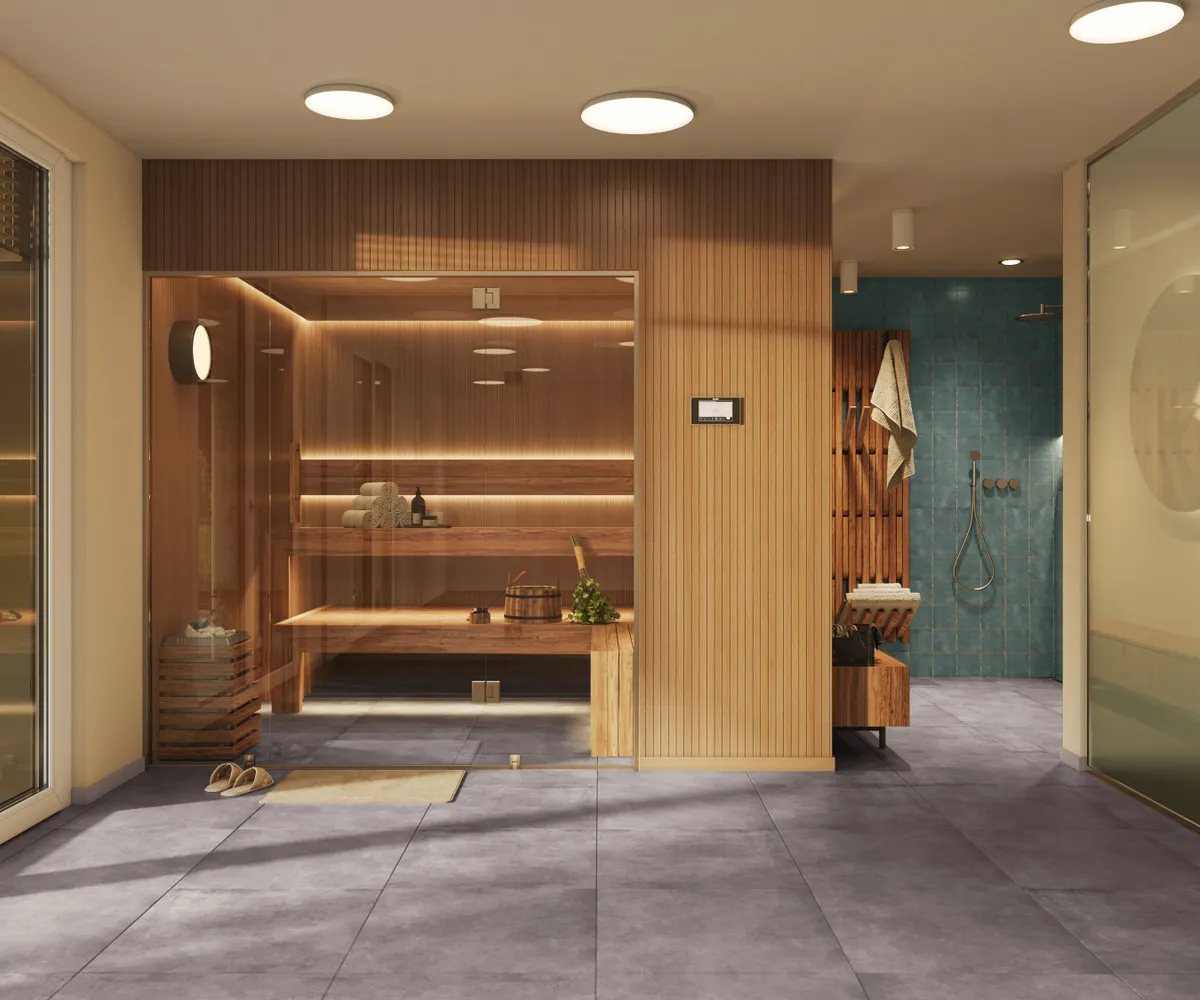 Die natürliche Materialität schafft ein gesundes Raumklima, kombiniert mit moderner Technik für maximalen Komfort.