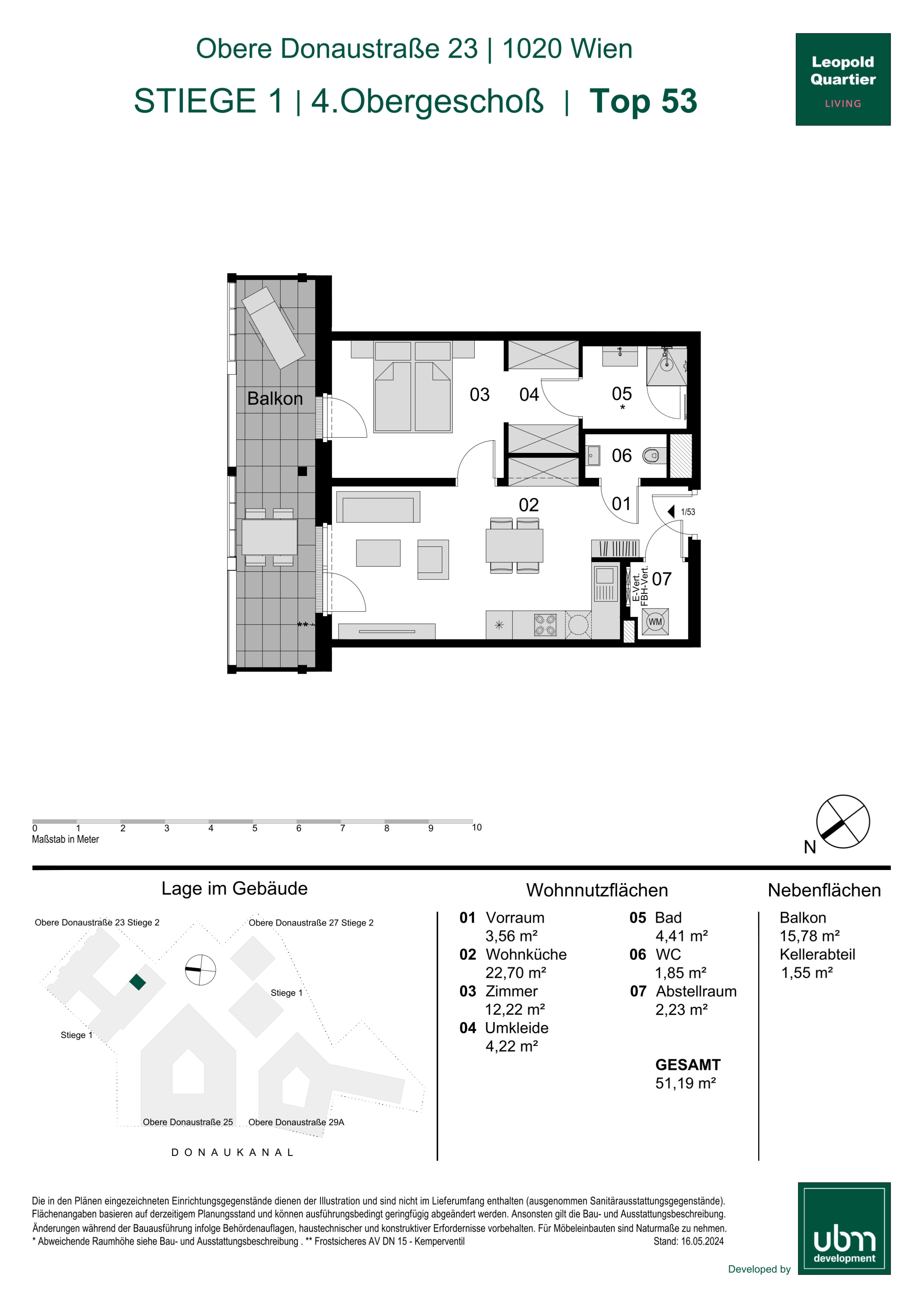 Die Anbindung ist hervorragend: In wenigen Minuten erreicht man die U4-Station Roßauer Lände, die wichtigsten Verkehrsknotenpunkte der Stadt sowie in nur 20 Autominuten den Flughafen Wien.
