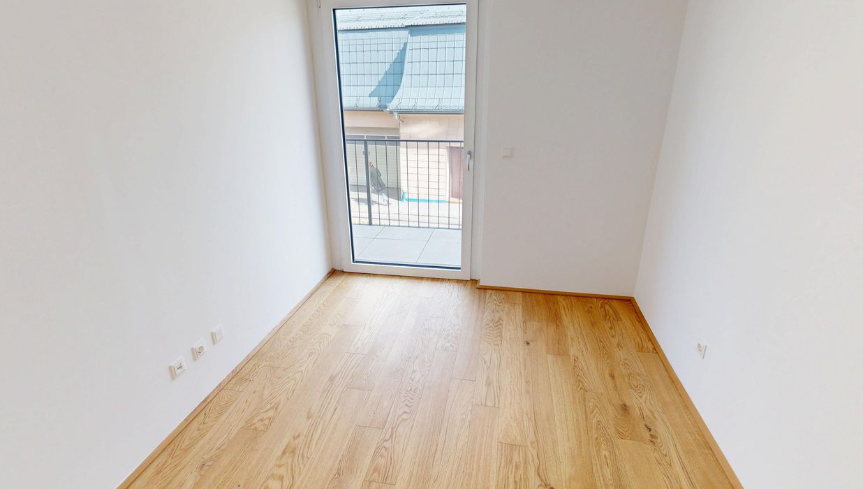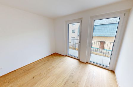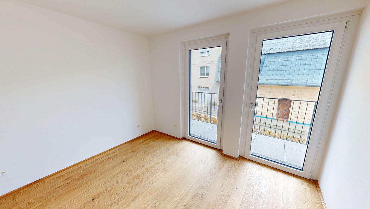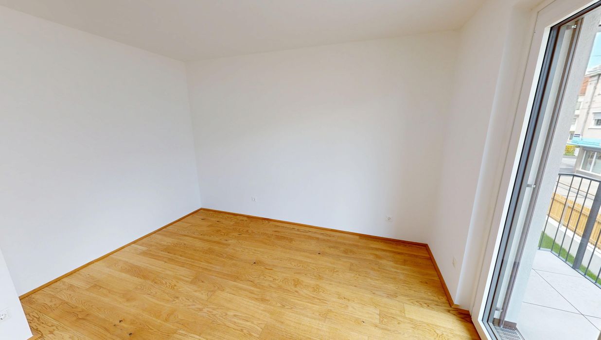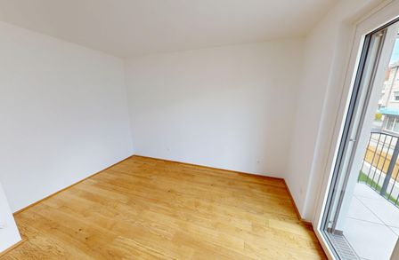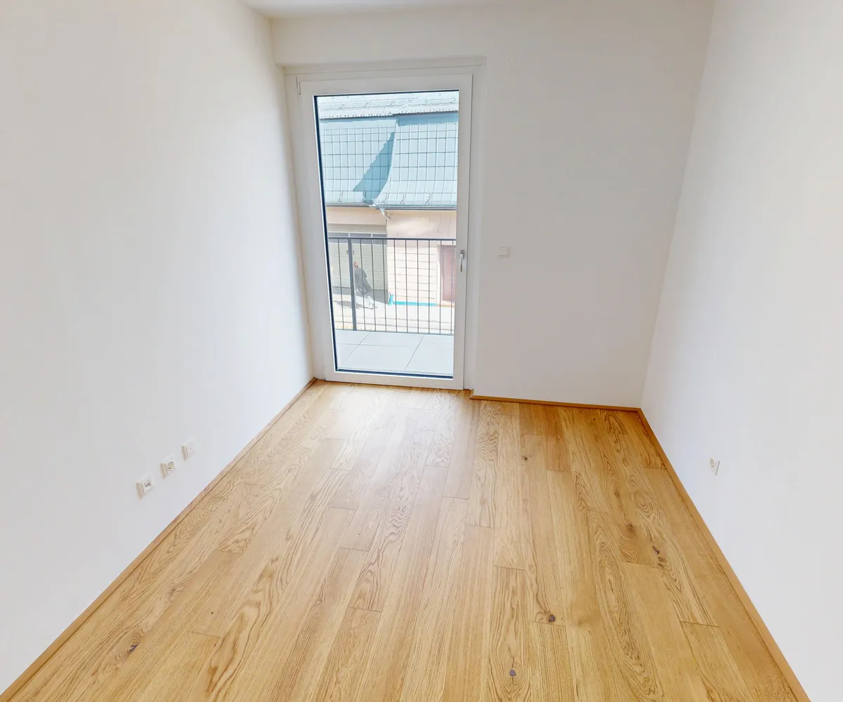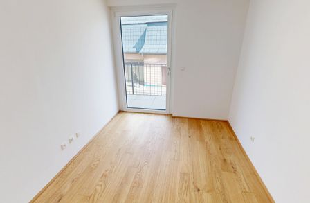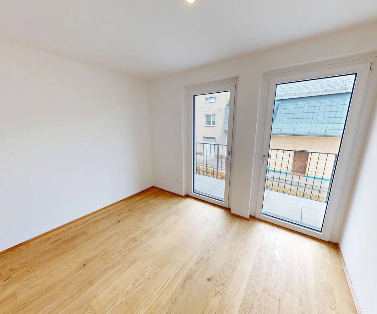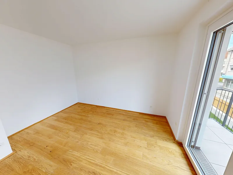 Im ersten Geschoss warten zwei helle Zimmer auf Sie, flexibel nutzbar als Schlaf-, Arbeits- oder Kinderzimmer. Beide haben direkten Zugang zum Balkon. Perfekt für einen entspannten Start in den Tag.
