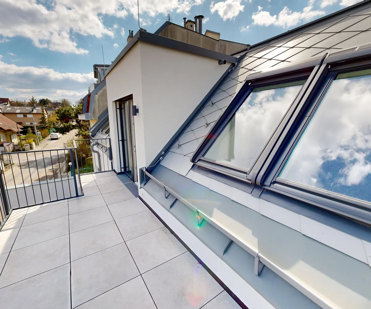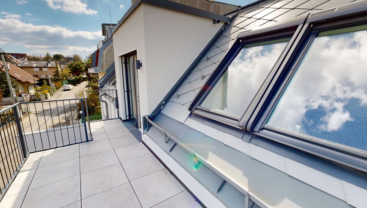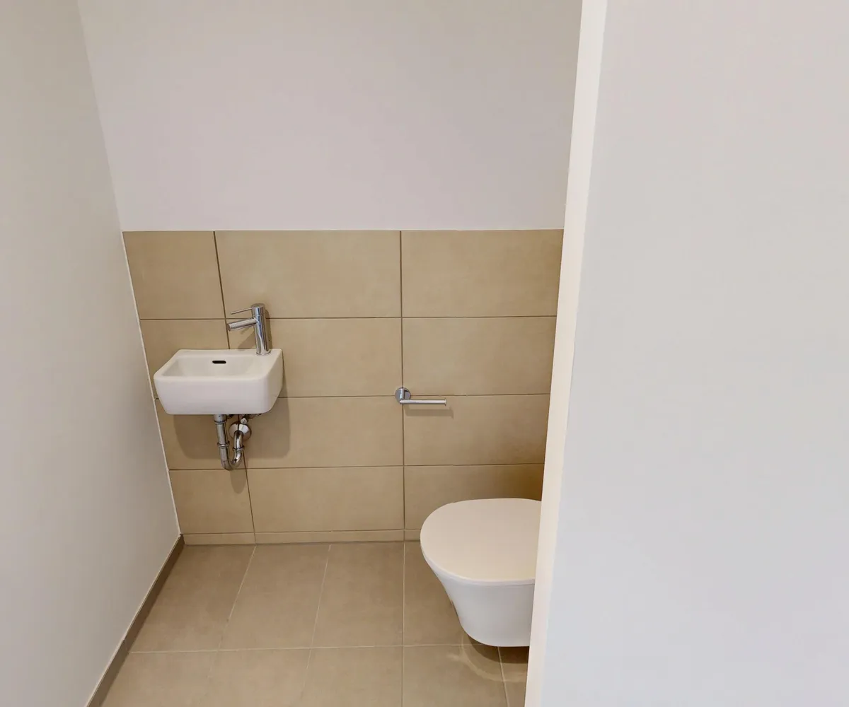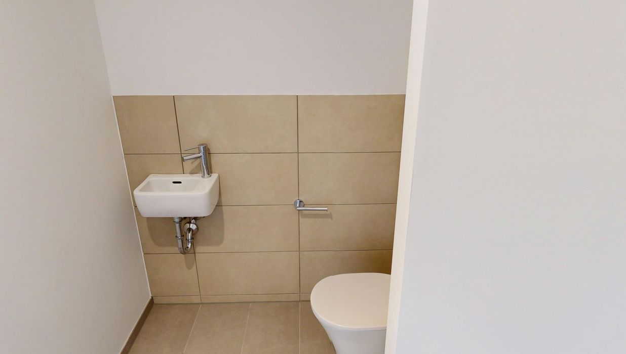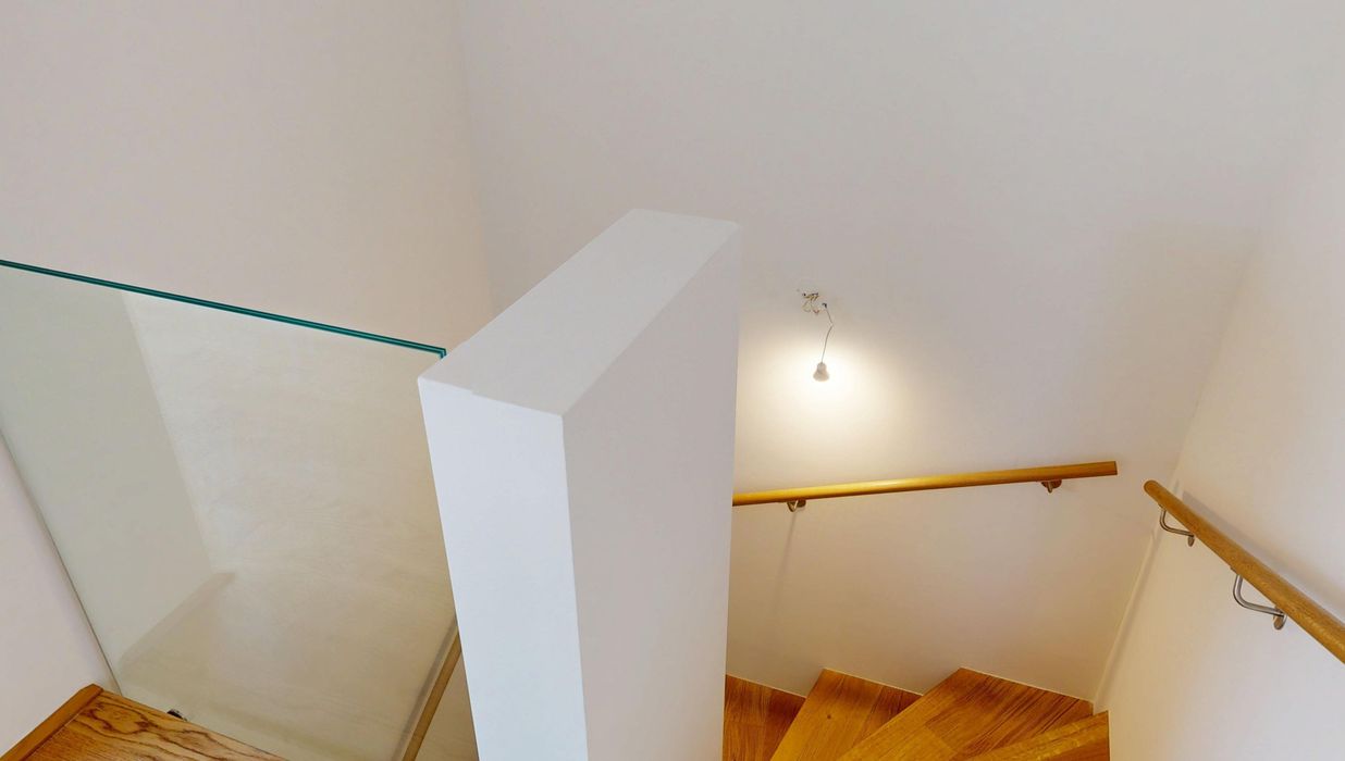 Über die Treppe geht’s hinauf in den großzügigen Wohn- und Essbereich. Offen gestaltet, mit viel Licht und Zugang zu einem weiteren Balkon. Ihrem persönlichen Platz im Freien. Auch ein zweites WC mit großzügigen Stauraum befindet sich auf dieser Etage.