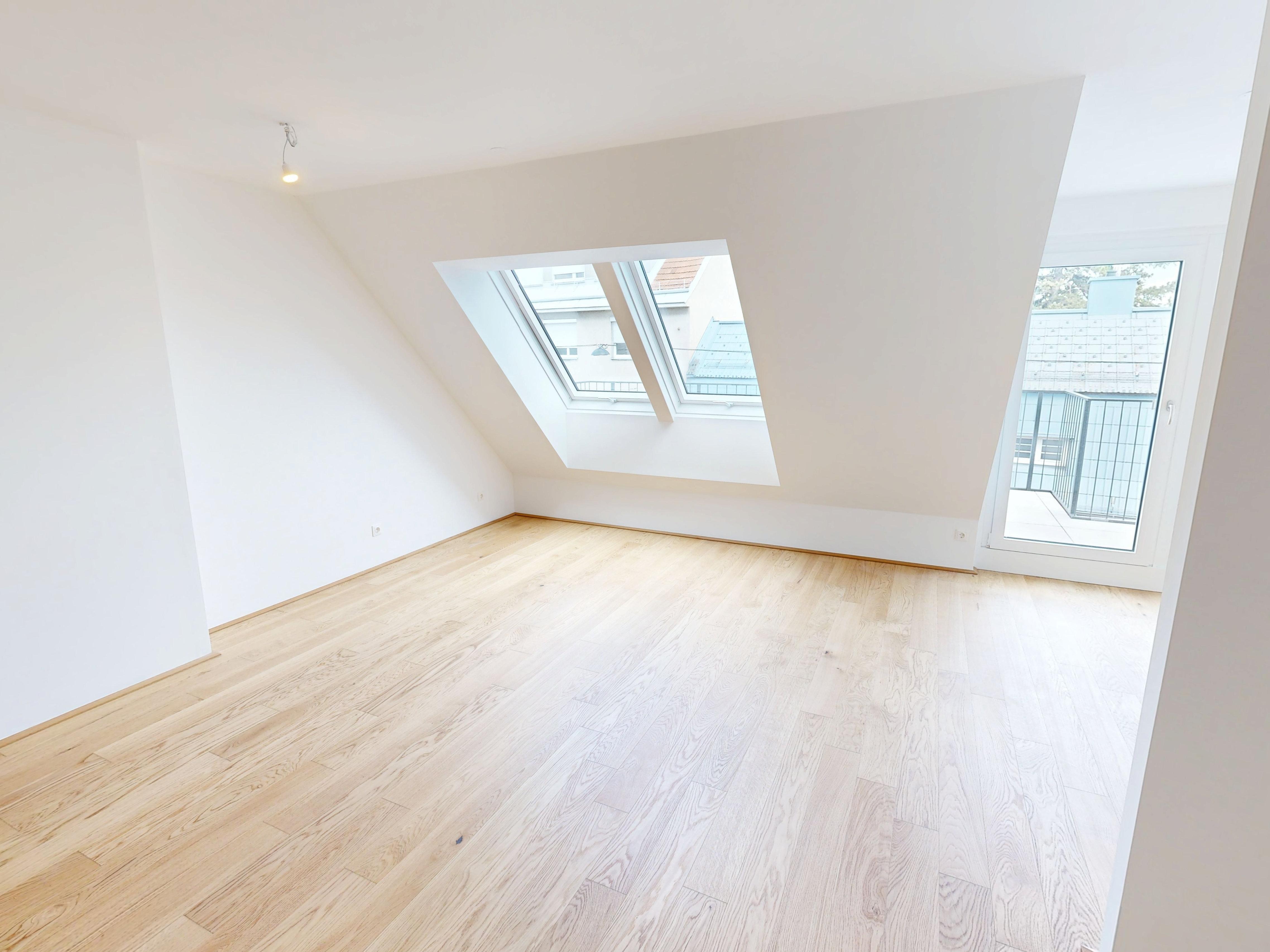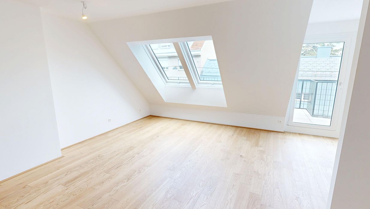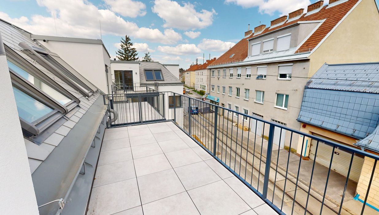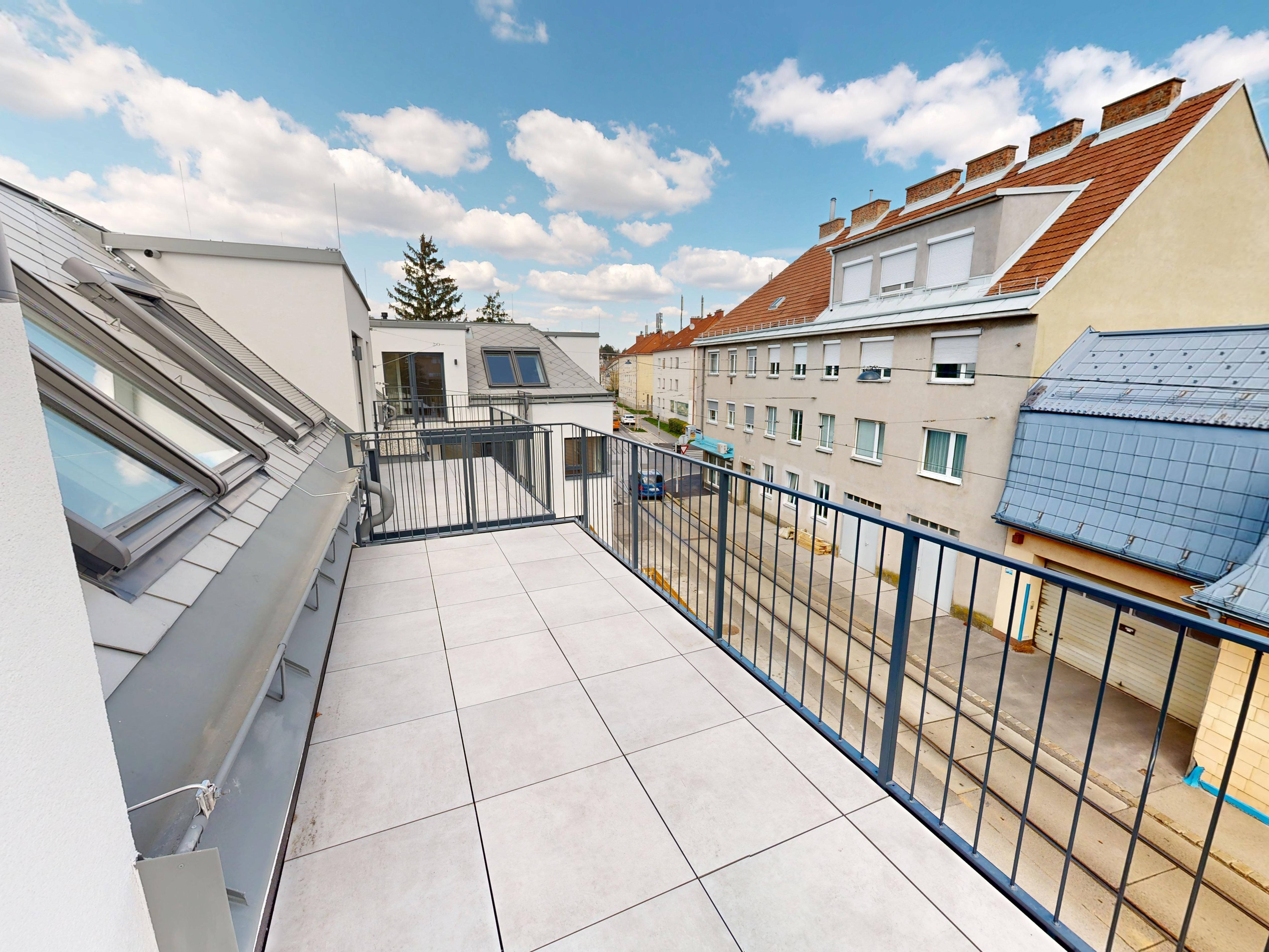 In attraktiver Lage des 23. Bezirks und mit sehr guter Anbindung an den öffentlichen Verkehr sowie der gleichzeitigen Nähe zur Natur liegt der Eingang dieser Wohnung im ersten Stock des Neubaus.