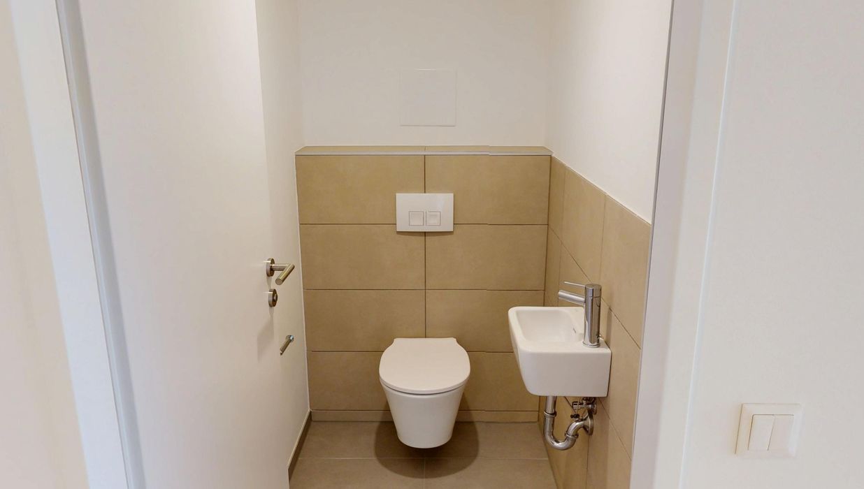 Ein praktischer Abstellraum direkt beim Eingang sorgt für Ordnung, ein separates WC ergänzt diese Ebene sinnvoll.