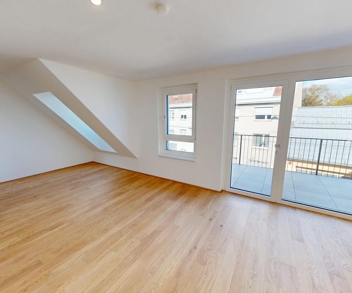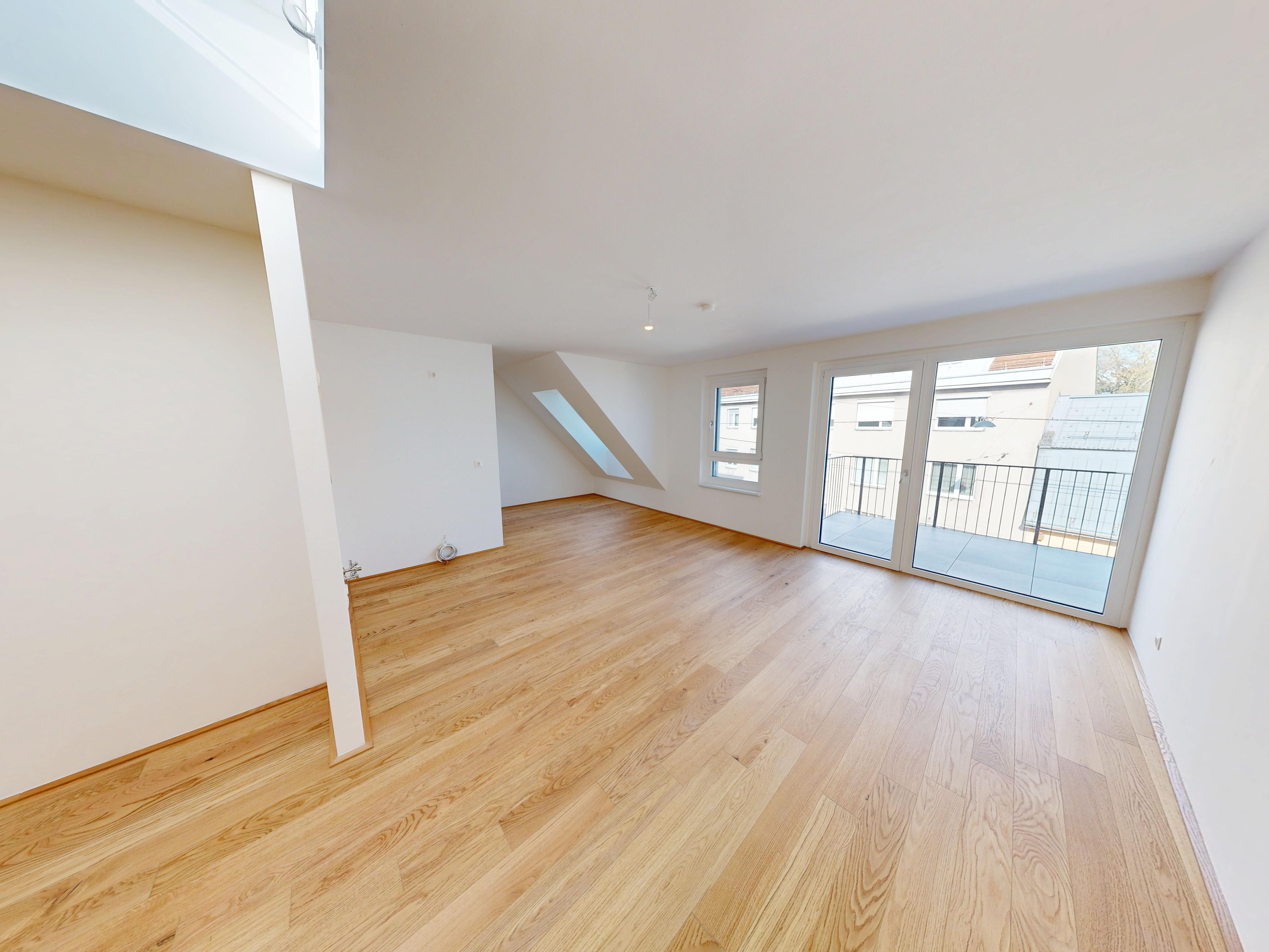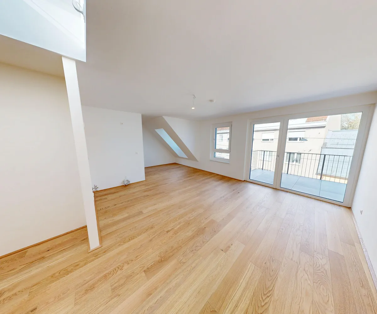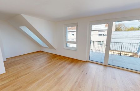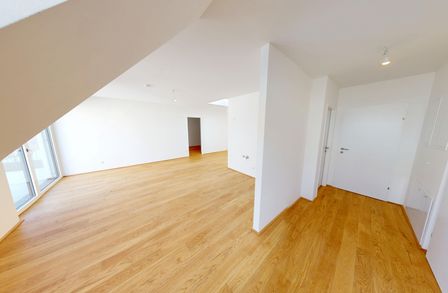 In attraktiver Lage des 23. Bezirks und mit sehr guter Anbindung an den öffentlichen Verkehr sowie der gleichzeitigen Nähe zur Natur liegt diese Wohnung im Dachgeschoss des Neubaus.