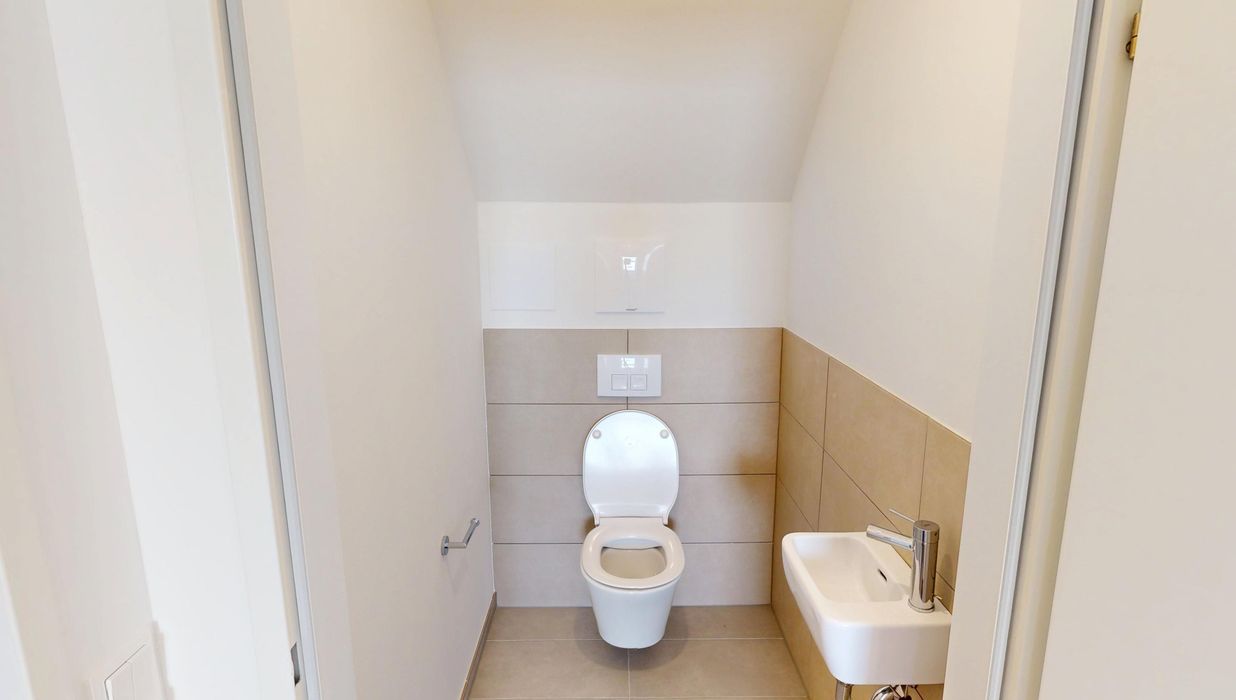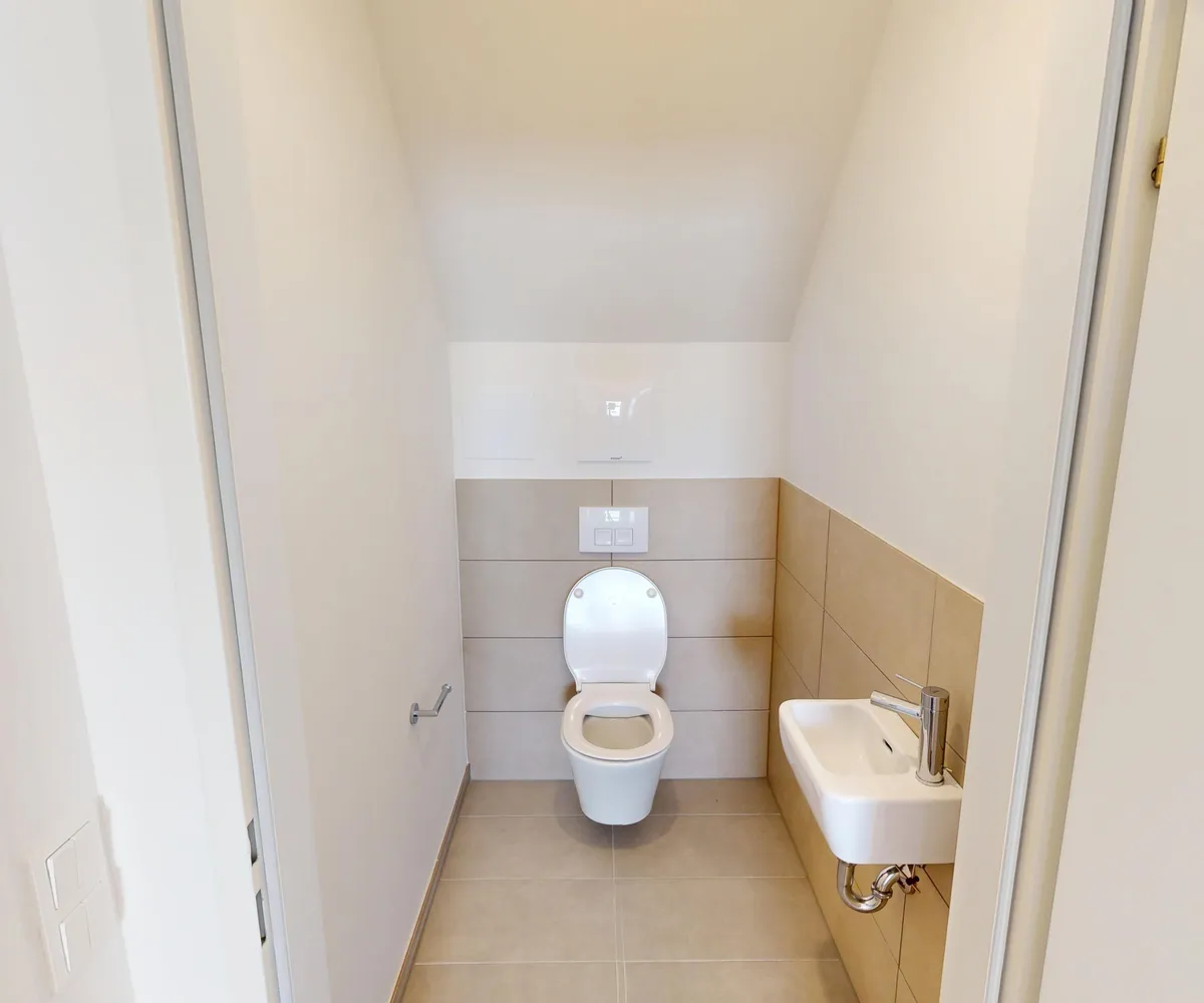 Direkt beim Eingang befinden sich WC und das separate Bad, praktisch gelegen, wenn Sie schnell noch ins Bad möchten, bevor Sie das Haus verlassen.