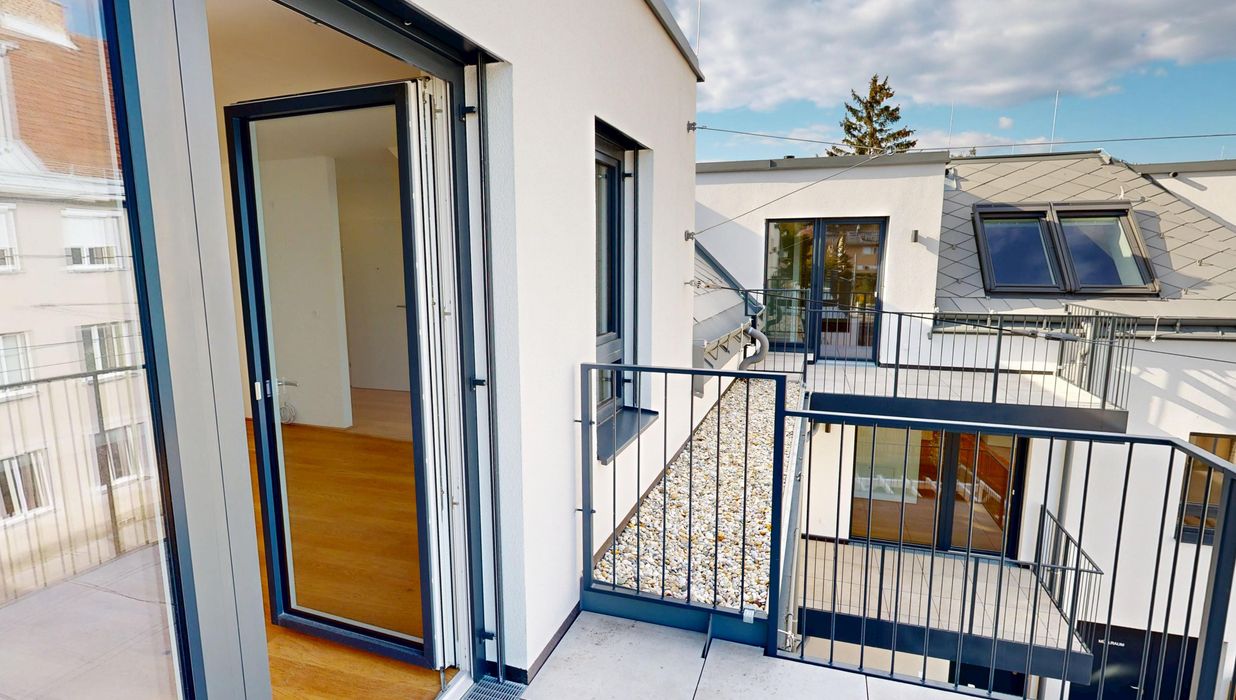 Der Balkon erweitert das Wohngefühl und bietet genügend Platz für den Morgenkaffee oder eine kleine grüne Oase.