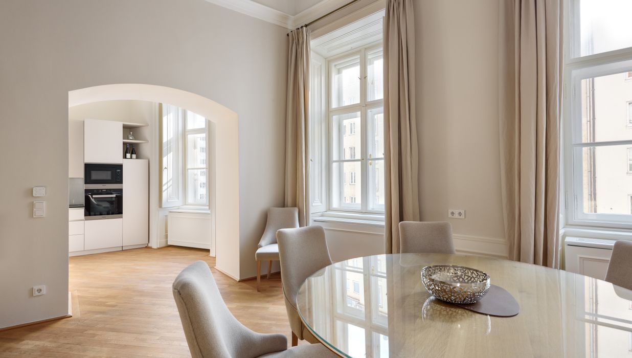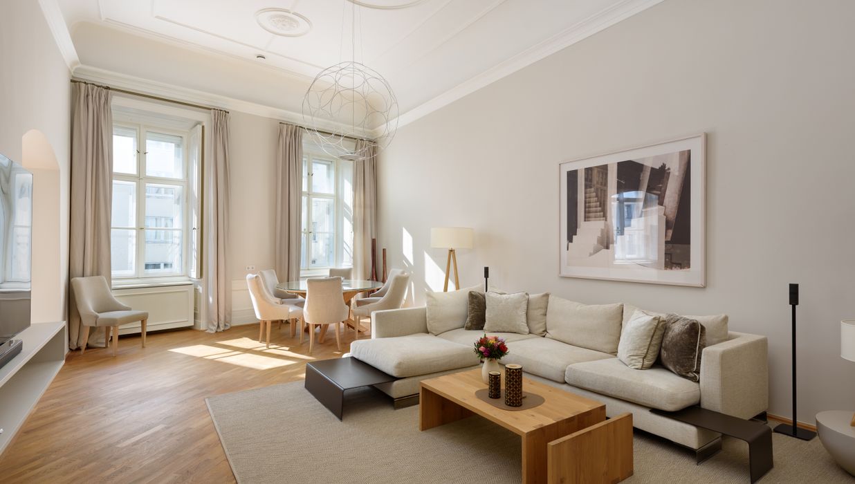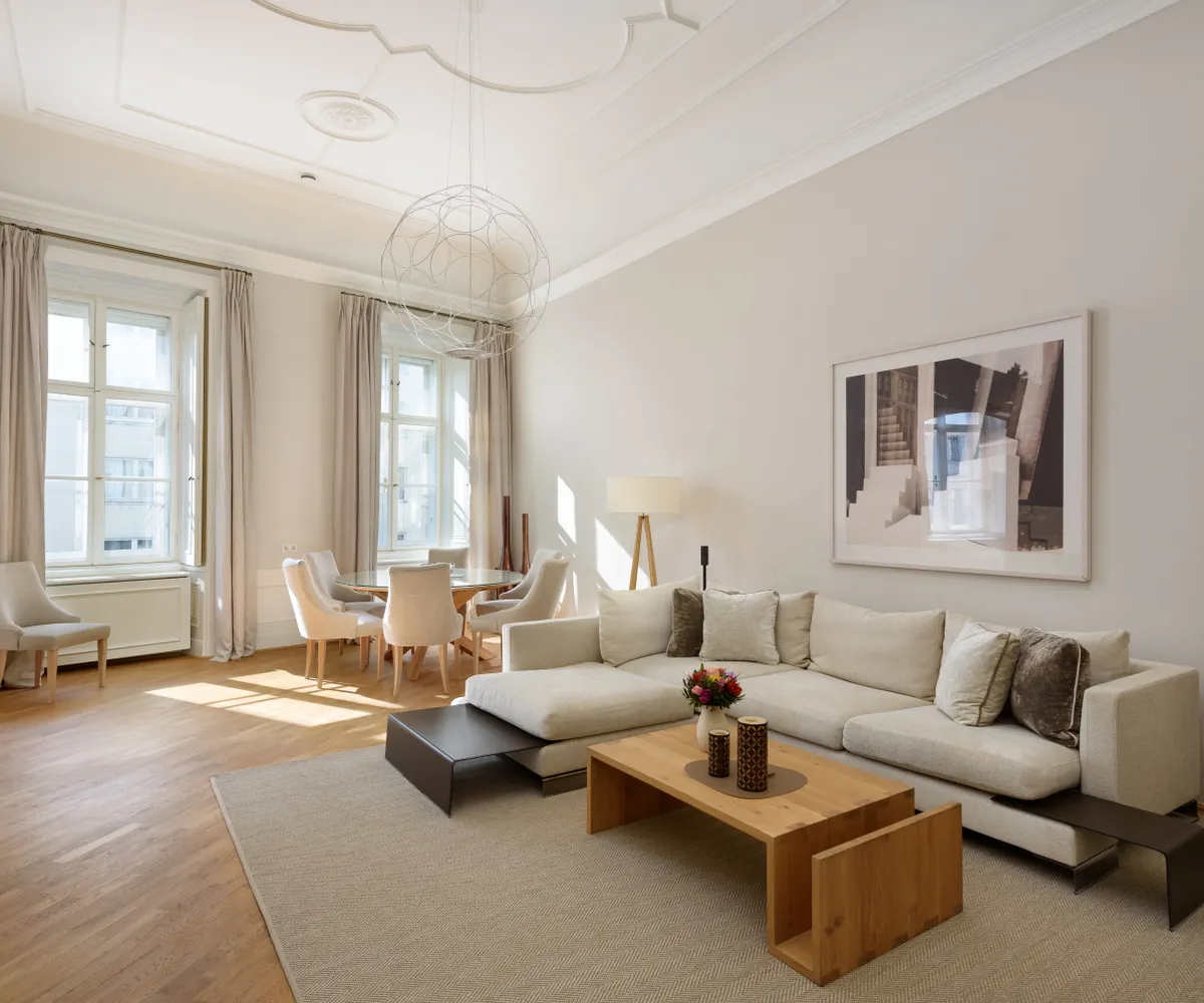 Moderne Annehmlichkeiten wie eine Klimaanlage sorgen für Behaglichkeit zur jeder Jahreszeit. Die Kombination aus eleganten, großzügigen Wohnräumen und hochwertiger Ausstattung macht diese Wohnung zu einem besonderen Rückzugsort mitten in der Wiener Innenstadt.