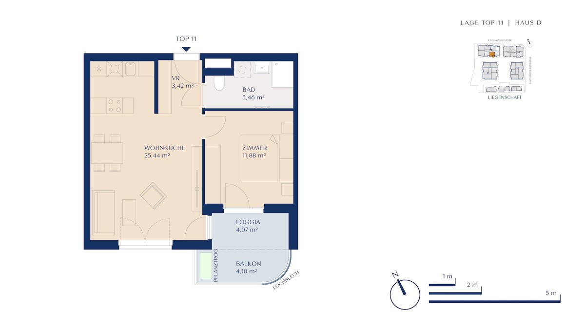 Der nahegelegene Autobus bringt Sie in nur 13 Minuten nach Hietzing, und der Schnellbahn-Bahnhof Atzgersdorf ist lediglich eine kurze Spazierstrecke oder eine zweiminütige Busfahrt entfernt. Von dort aus erreichen Sie die zentralen Verkehrsknotenpunkte Wien Meidling und Wien Hauptbahnhof in nur sechs bzw. zwölf Minuten. Diese gute Anbindung macht das Projekt zur idealen Basis für ein urbanes Leben im Grünen – auch ohne eigenem Auto!