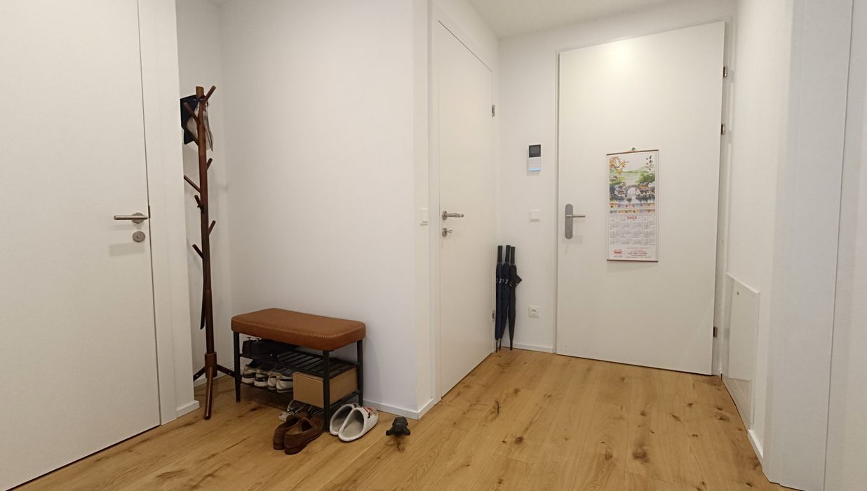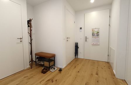 Weizer Parkett Eiche in den Wohnräumen und großflächige Bodenfliesen im Badezimmer und Abstellraum wurden sorgfältig ausgewählt und vermitteln einen edlen Eindruck. Zusätzlich verfügt der Abstellraum über einen praktischen Waschmaschinen-Anschluss .