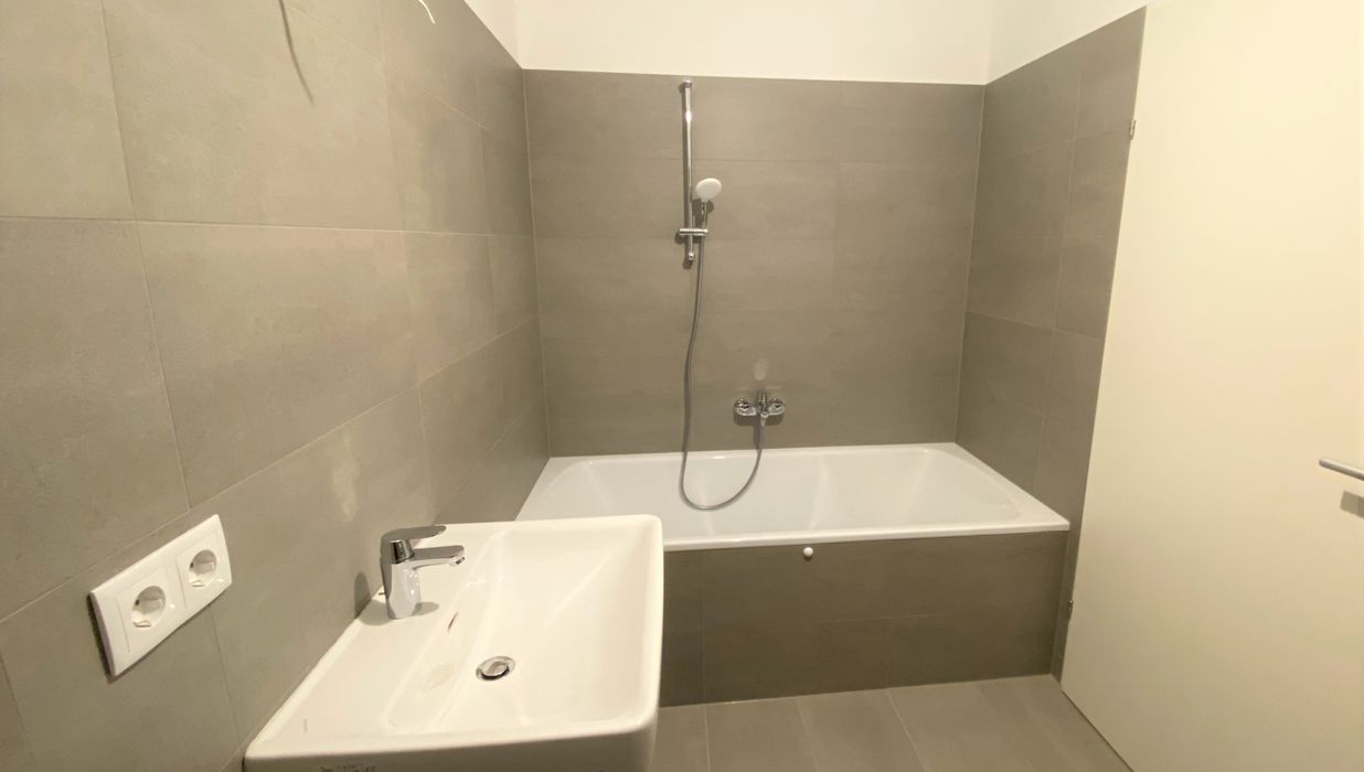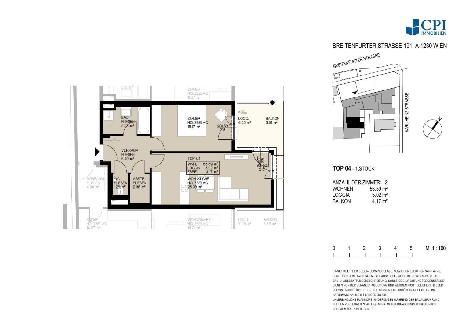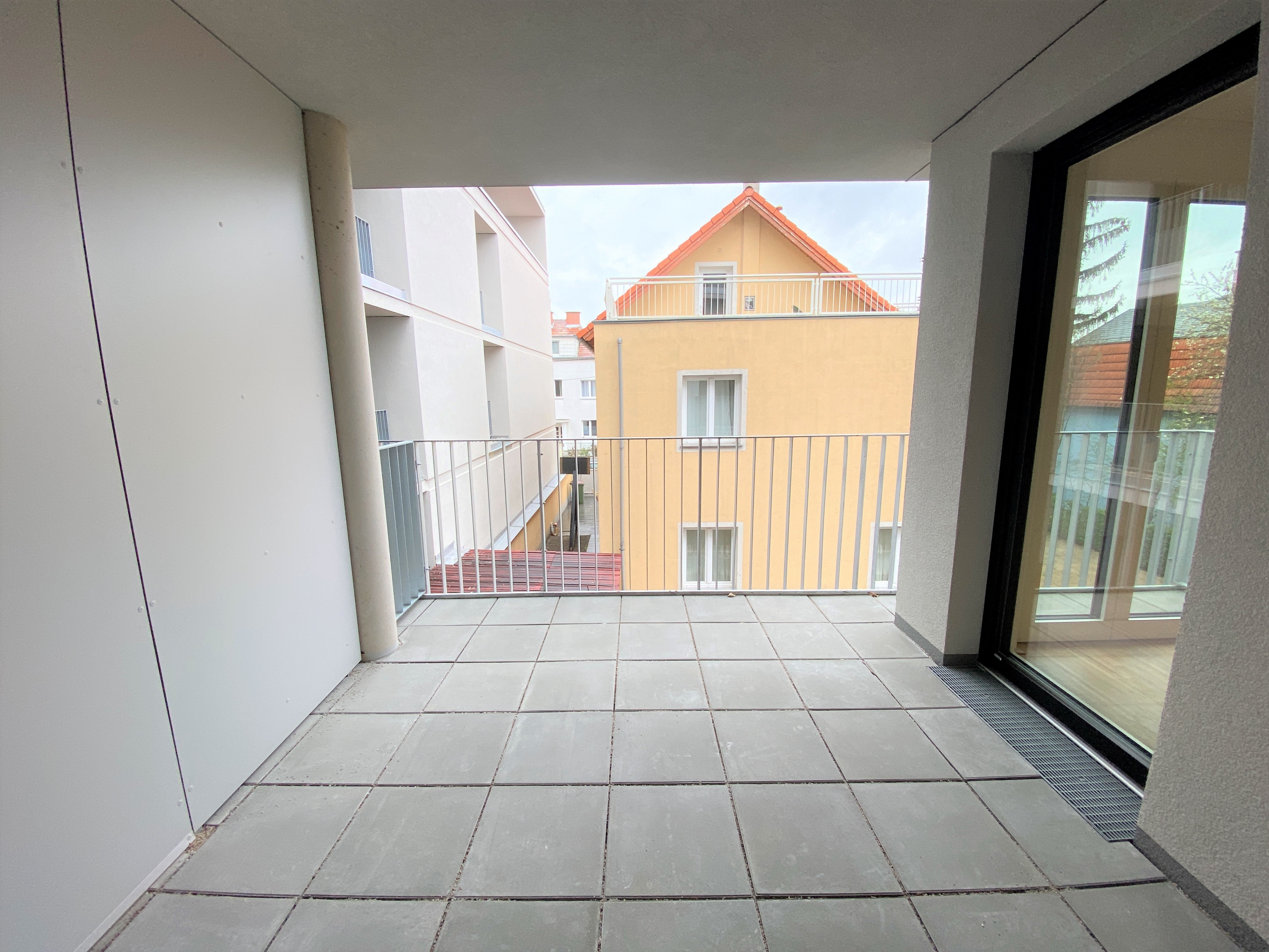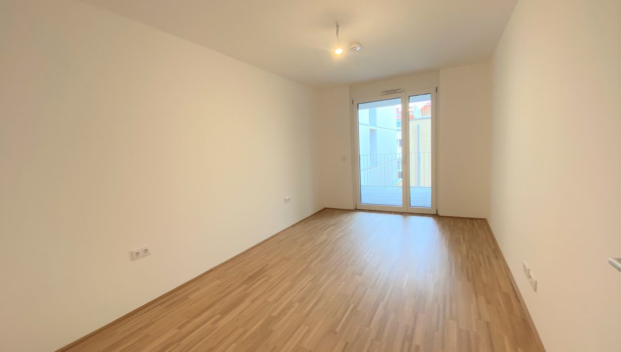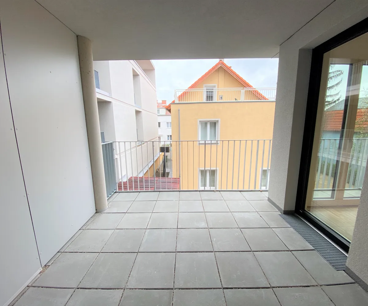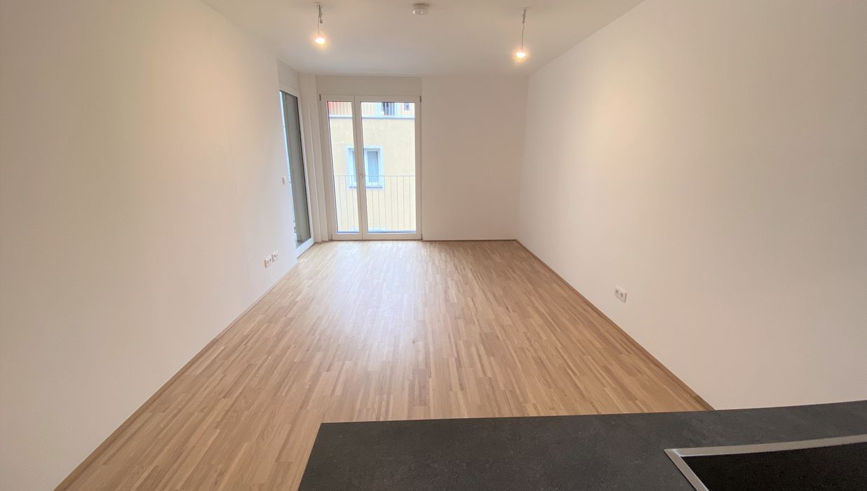 Die Wohnung selbst befindet sich im 1. Obergeschoss und verfügt über eine großzügige Wohnküche, ein Schlafzimmer, ein Badezimmer mit Wanne, ein separates WC sowie einen Abstellraum und Vorraum. Die Loggia lädt zum Verweilen ein rundet das Wohnerlebnis perfekt ab.