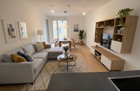 Wohlfühlen, im Herzen des 23. Bezirks, dort finden Sie dieses attraktive Neubauprojekt. Insgesamt zeichnet sich das Objekt durch eine hochwertige und zeitlos elegante Ausstattung aus, die durch die Planung intelligenter Grundrisse eine maximale Flächenausnutzung gewährleistet. Zahlreiche Supermärkte sowie zwei große Einkaufszentren befinden sich nahe der Liegenschaft. Ebenso gelangt man durch die gute Anbindung an das öffentliche Verkehrsnetz man rasch zu U- und S-Bahnstationen, die in alle Teile Wiens führen.