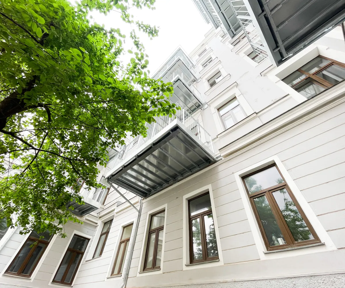 Modernisierte Eleganz mit historischem Flair Im Jahr 2003 wurde das Gebäude unter der Leitung des renommierten Architekten Géza Batthyány umfassend renoviert. Dabei wurde großer Wert darauf gelegt, die charakteristischen Altbauelemente zu bewahren, während zugleich moderner Wohnkomfort integriert wurde. Hohe Räume, kunstvolle Stuckdecken sowie aufwendig gestaltete Verzierungen im Eingangsbereich zeugen von der architektonischen Qualität des späten 19. Jahrhunderts.