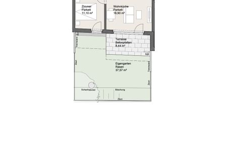 Die perfekt aufgeteilte 2 Zimmer Gartenwohnung, hat eine Wohnfläche von ca. 38 m² und eine Außenfläche von ca. 46 m².