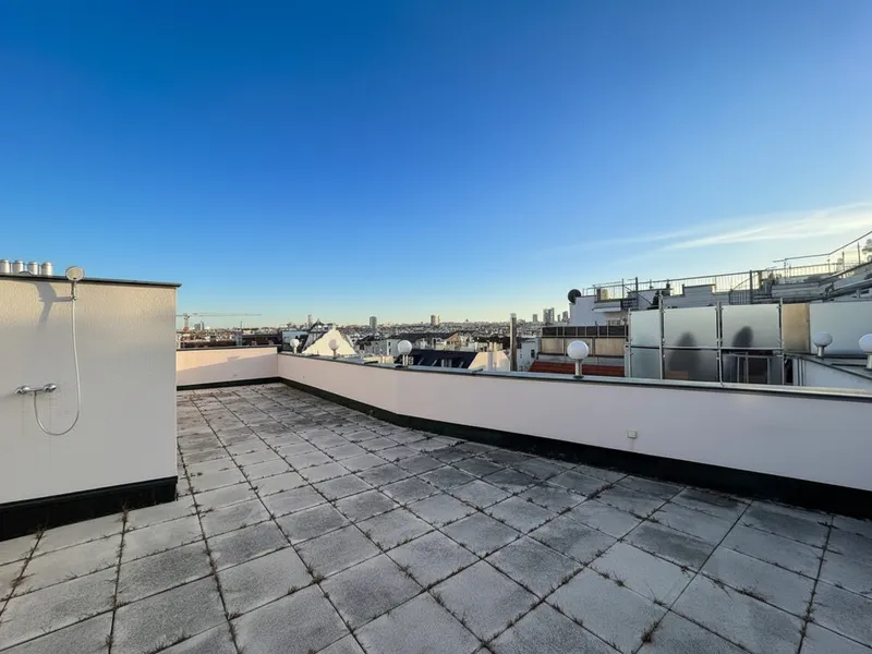 Die rund 100 m² große Terrasse mit Outdoor-Dusche bildet das absolute Highlight. Mit einem beeindruckenden Ausblick über die Dächer Wiens bietet sie eine private Oase mitten in der Stadt – perfekt für entspannte Stunden im Freien oder stilvolle Abende . Die großzügige Außenfläche eröffnet zahlreiche Gestaltungsmöglichkeiten: Ob Sauna, Whirlpool, Outdoor-Küche mit Grillstation oder ein grünes Stadtrefugium – hier bleiben keine Wünsche offen.