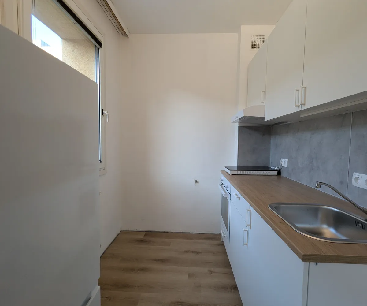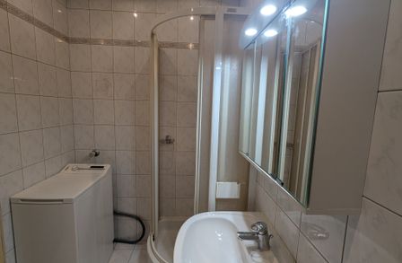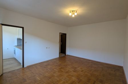 Die Wohnung teilt sich Raumaufteilung in einen Vorraum mit Einbauschrank, ein Badezimmer mit Duschkabine, WC, Waschtisch, Spiegelschrank und Waschmaschine, einem hellen, offen gestalteten Wohn-/Schlafbereich und eine räumlcih getrennte, neuen Küche (mit großer Kühl-/Gefrierkombination, Backrohre, 2 Induktionskochfeldern und viel Stauraum aus.