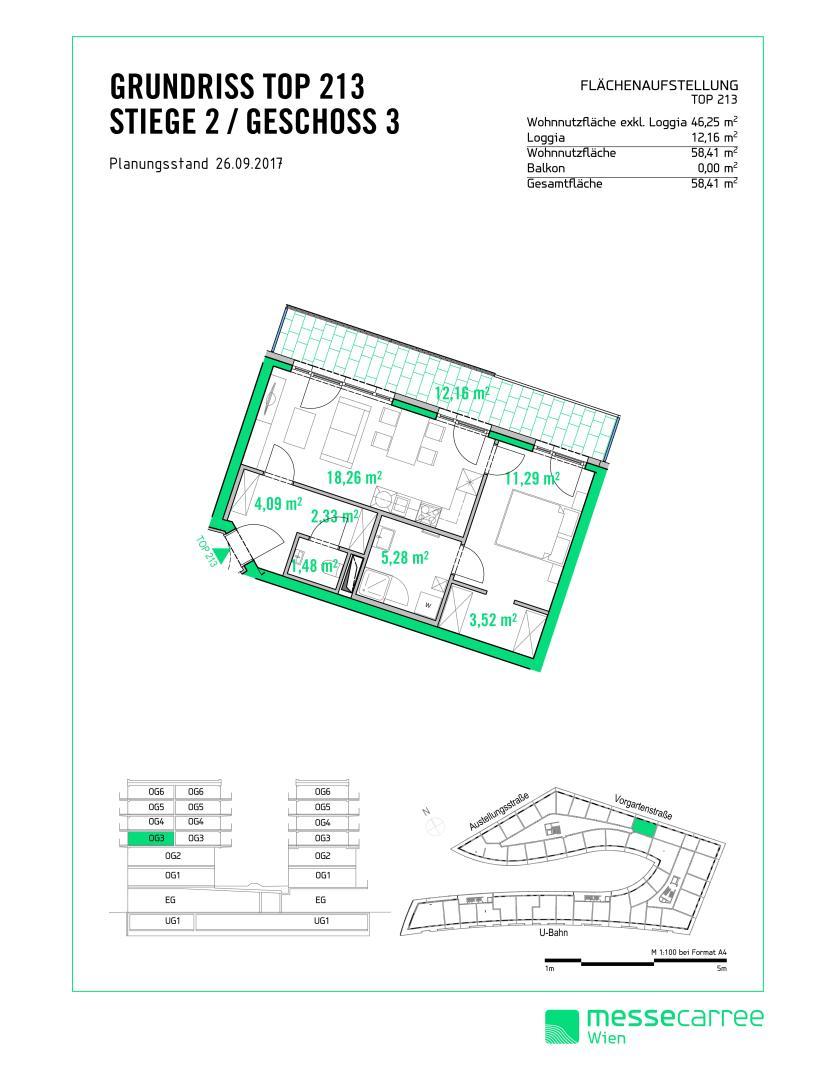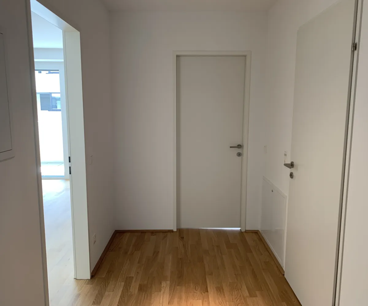 Die Wohnung selbst befindet sich im 3. Obergeschoss und gliedert sich in eine Wohnküche, ein Schlafzimmer, ein Badezimmer mit Dusche und Waschmaschinenanschluss, eine separate Toilette und einen geräumigen Vorraum. Des Weiteren lädt die knapp 13m³ große Loggia zum gemütlichen Verweilen ein.