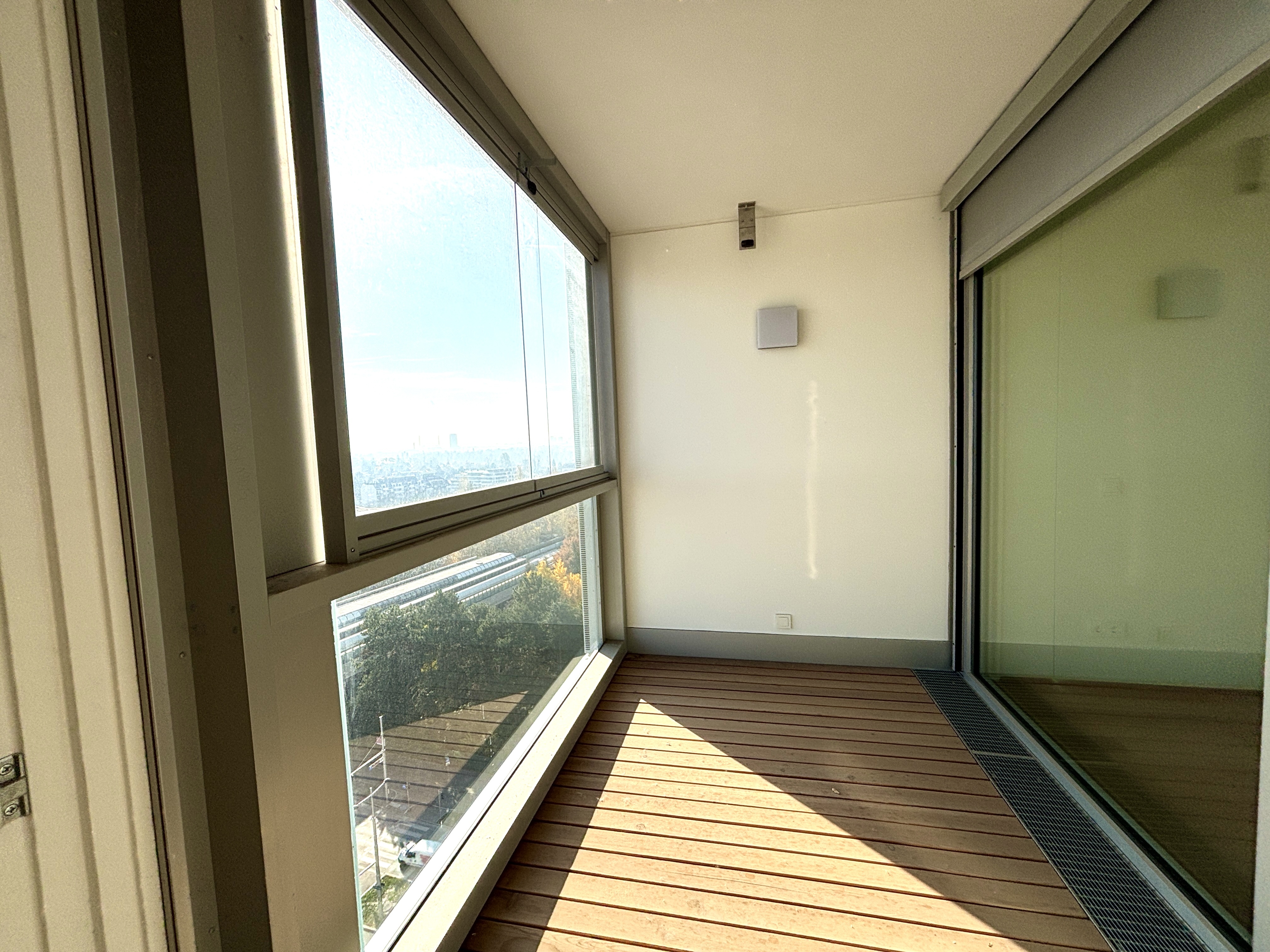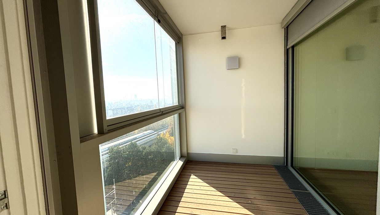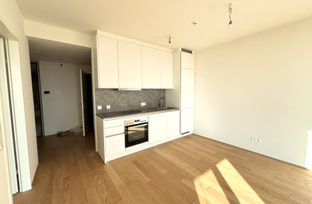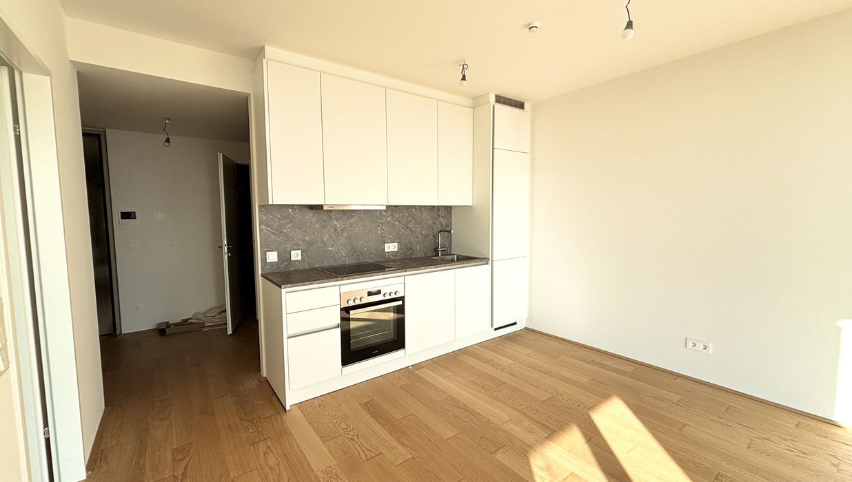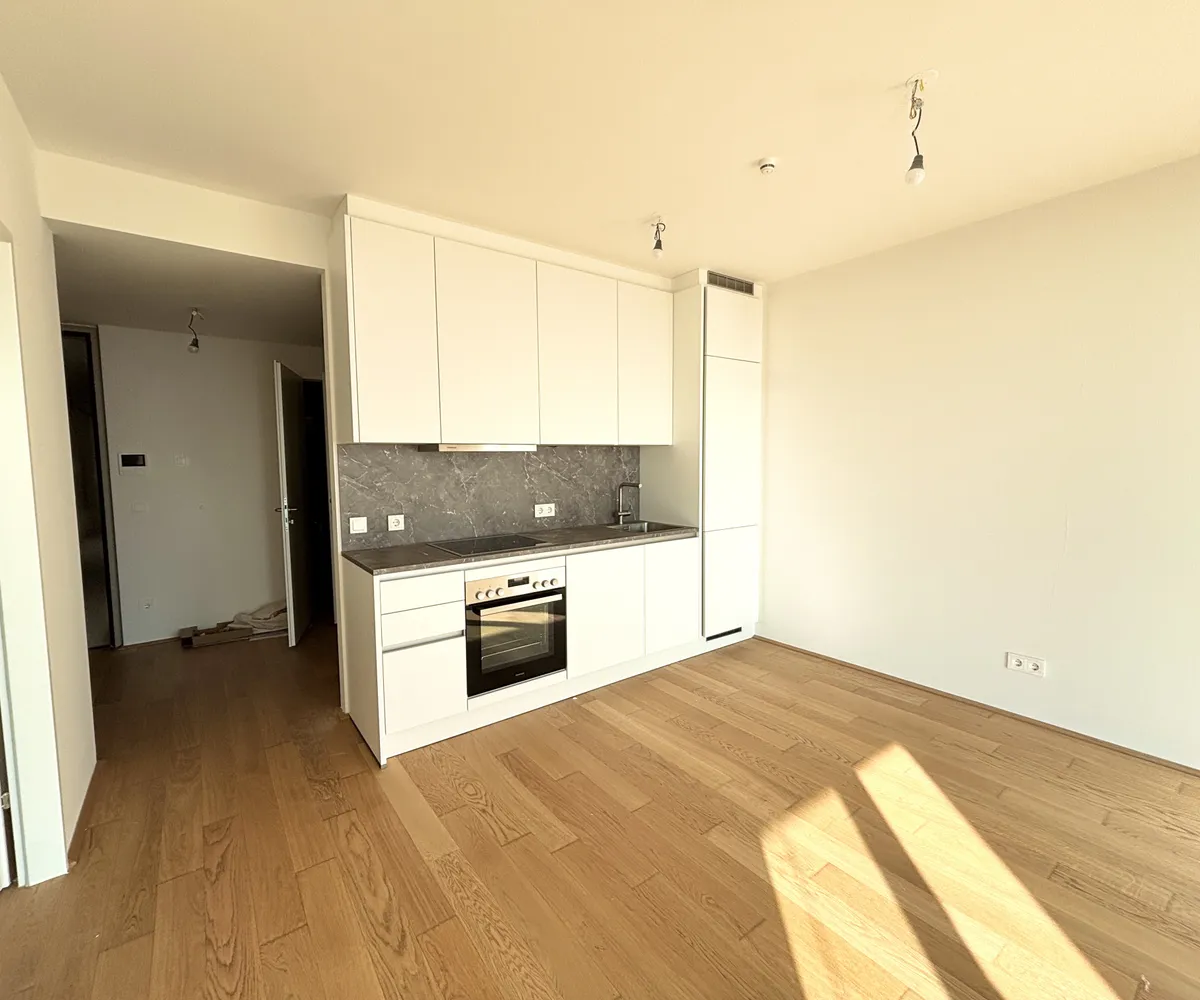Top 106 ist klar und smart aufgeteilt: vom Vorraum aus gelangen Sie in das Badezimmer, das separat gelegene WC sowie in den Abstellraum . Der Vorraum verbindet den Eingangsbereich mit dem luftigen, lichtdurchfluteten Wohnzimmer, in dem sich eine hochwertige Einbauküche befindet. Vom Wohnzimmer aus erreichen Sie die Loggia , die einen unvergesslichen Blick über Wien und die Alte Donau bietet. Das Schlafzimmer mit ca. 12 m² sorgt für Komfort und bietet einen ruhigen Rückzugsort der Gelassenheit.
