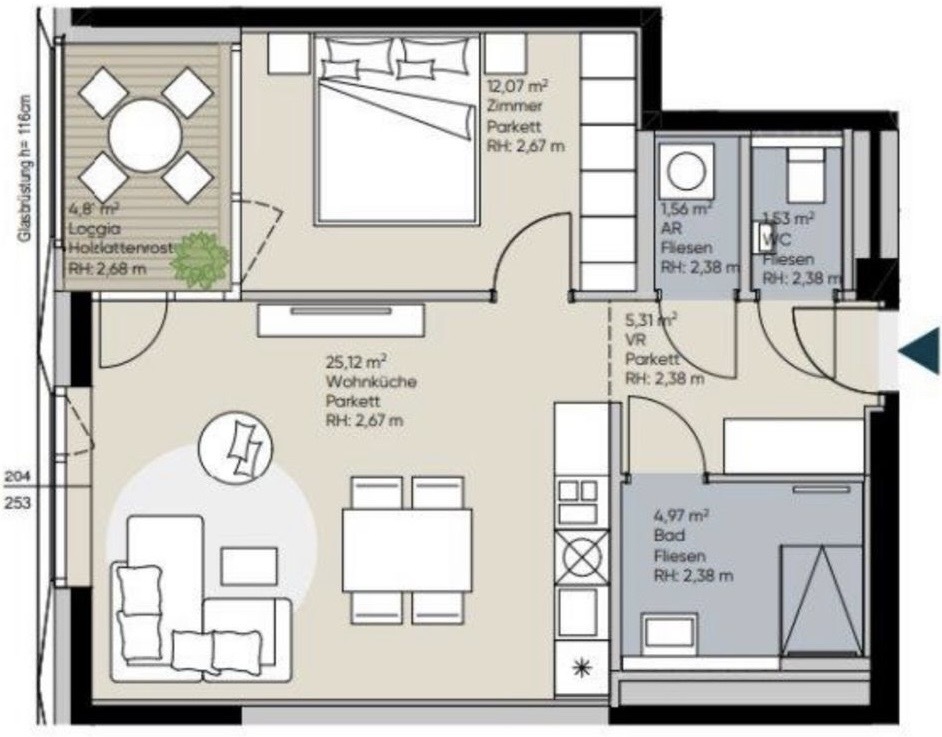 Raumaufteilung: