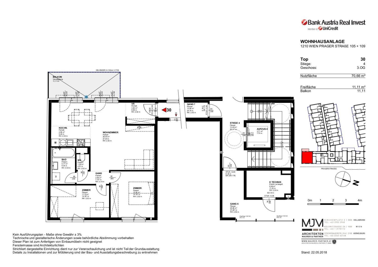 Die Wohnung befindet sich im 3. Obergeschoss und gliedert sich in eine großzügige Wohnküche, zwei Schlafzimmer, ein Badezimmer mit Wanne, ein separates WC sowie einen Vorraum.