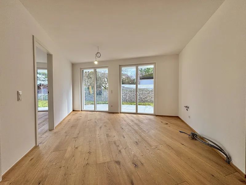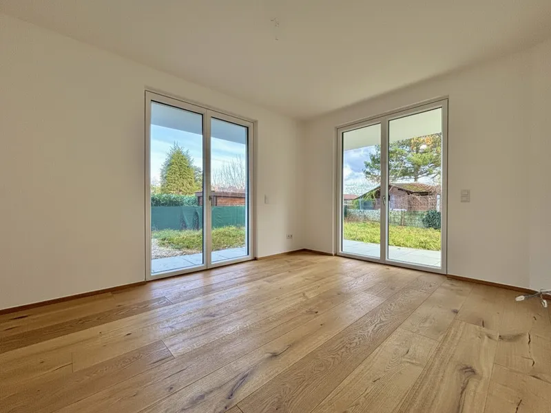 Hier beginnt der Tag mit Sonne und frischer Morgenluft – auf der großzügigen Terrasse (ca. 50 m²) im gemütlichen Garten (ca. 94 m²) . Top 1 bietet eine Wohnfläche von ca. 66 m² , mit einem großen offenen Wohn- und Essbereich mit direktem Zugang zur Terrasse und Garten. Zwei Schlafzimmer, ebenso mit direktem Zugang zum Garten/Terrasse, welche man als Schlafzimmer, Kinderzimmer oder Arbeitszimmer/Homeoffice nutzen kann. Das Badezimmer mit Blick ins Grüne sorgt für zusätzlichen Komfort.
